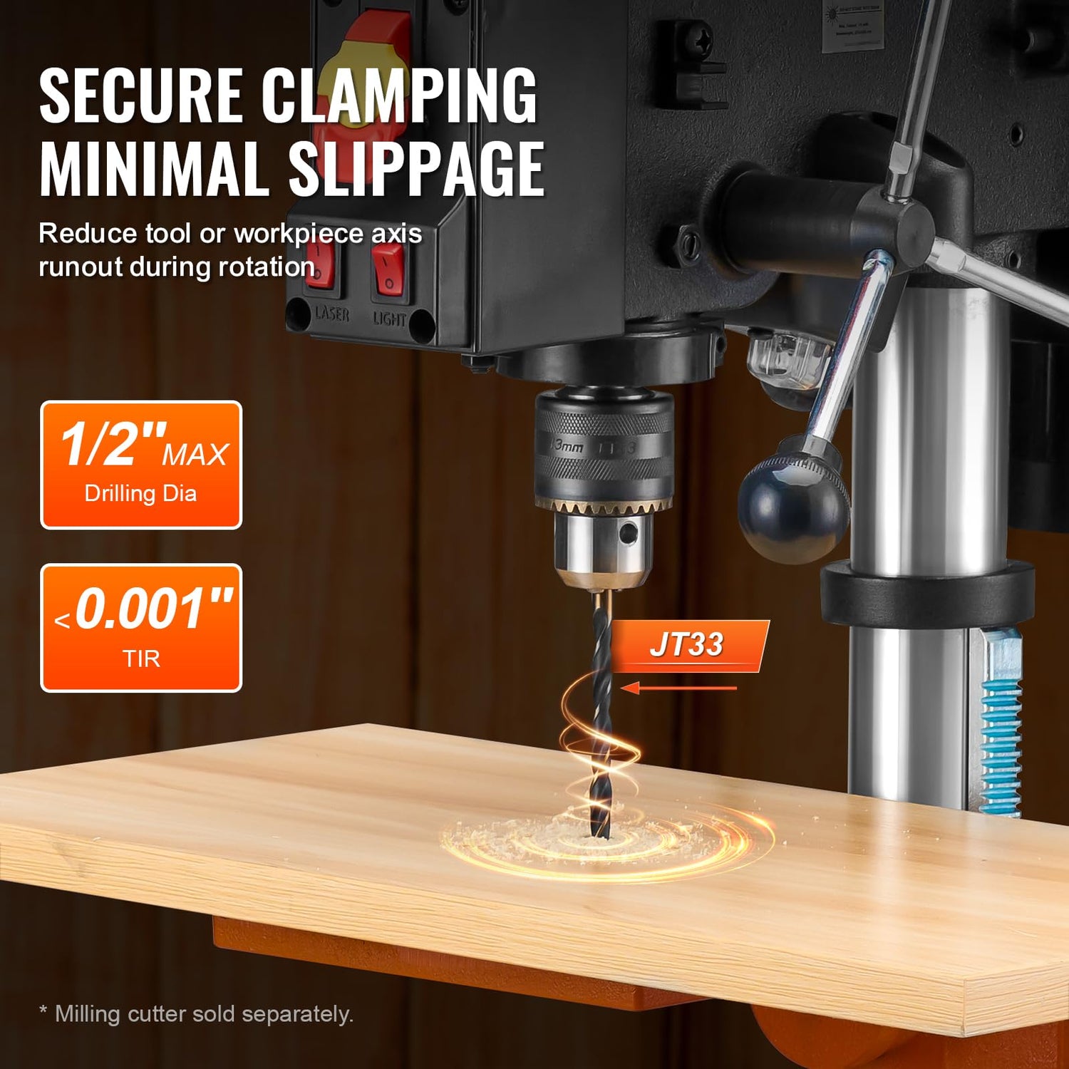 - Precision-Engineered Drilling: Achieve flawless results with our drill press’s low radial runout and 1/2-inch maximum drilling diameter. The adjustable depth stop and 2-inch spindle travel let you set precise drilling depths for perfect holes every time.