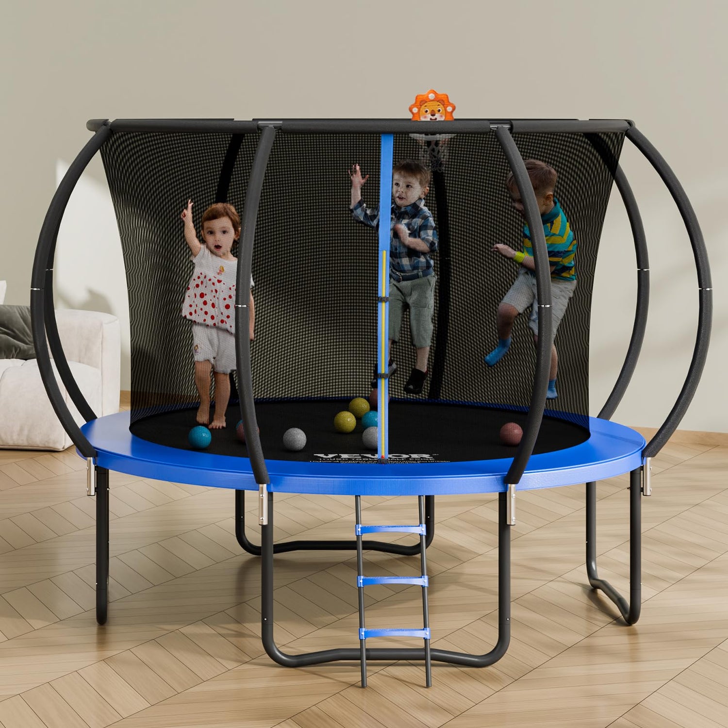VEVOR 10FT Trampoline with Enclosure Net, Ladder, and Curved Pole, Heavy Duty with Jumping Mat and Spring Cover Padding, Outdoor Recreational Trampoline for Kids and Adults