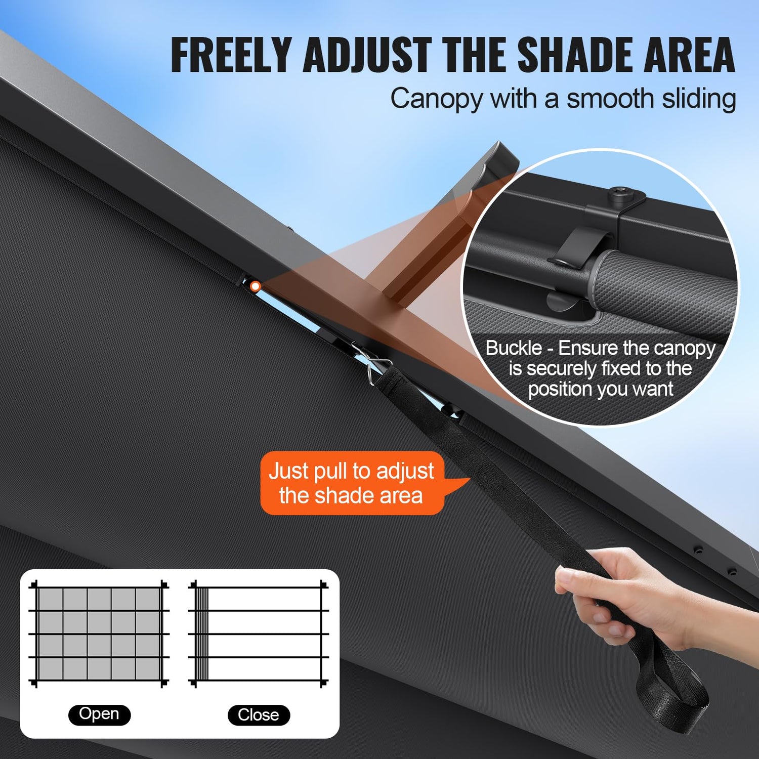 - Adjustable Shade Canopy: Equipped with an adjustable retractable canopy and built-in sliding track design, you can easily adjust the shade area as needed. Whether you need shade on scorching hot days or protection during light rain, this pergola offers the best comfort experience, allowing you to enjoy the perfect balance of sun and shade.