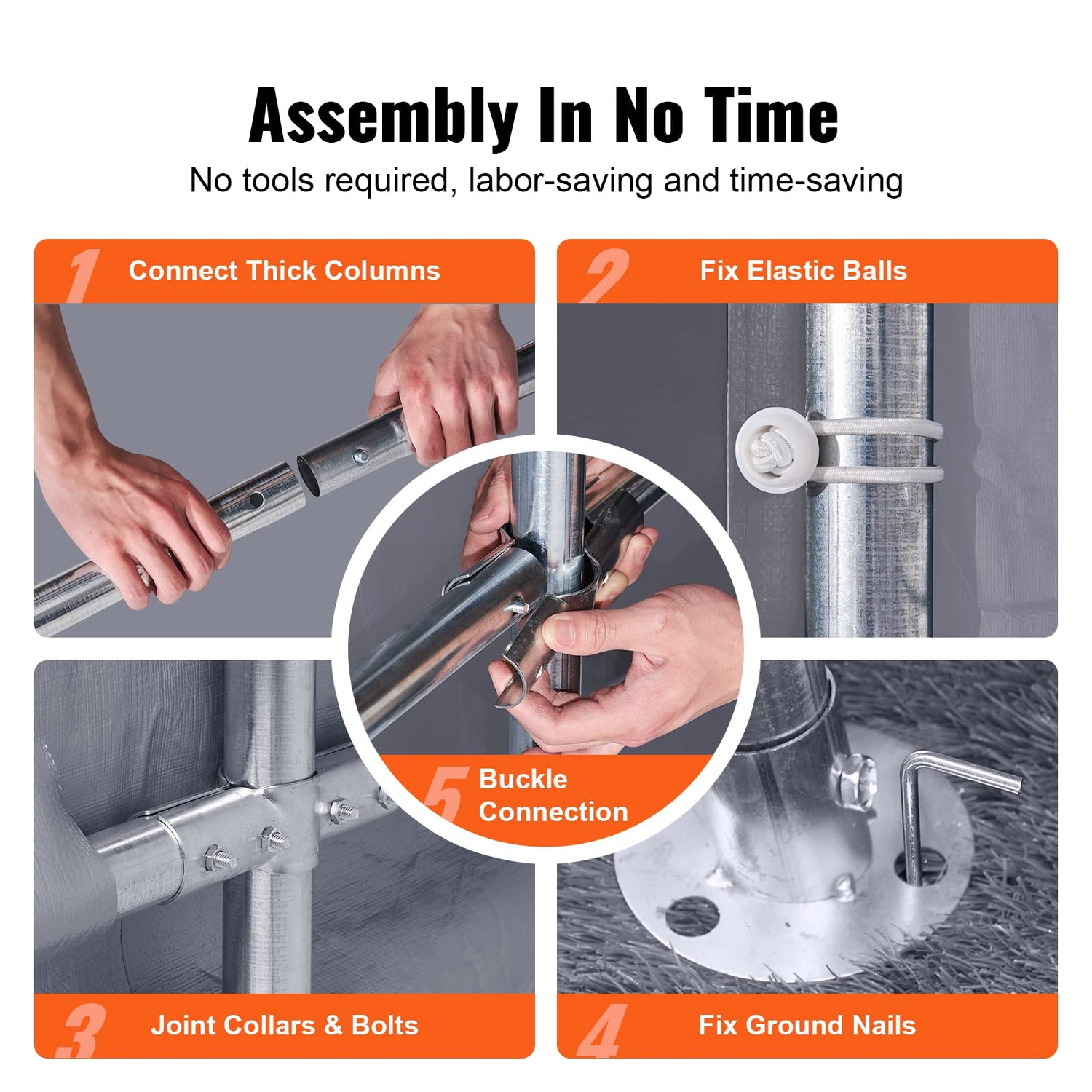 - BROADLY APPLICABLE: VEVOR portable storage shed is perfect for storing everything from motorcycles and other vehicles to garden tools, lawn mowers, and even pool supplies and firewood. Plus, you can use it in a garden, backyard, patio, or other outdoor area.