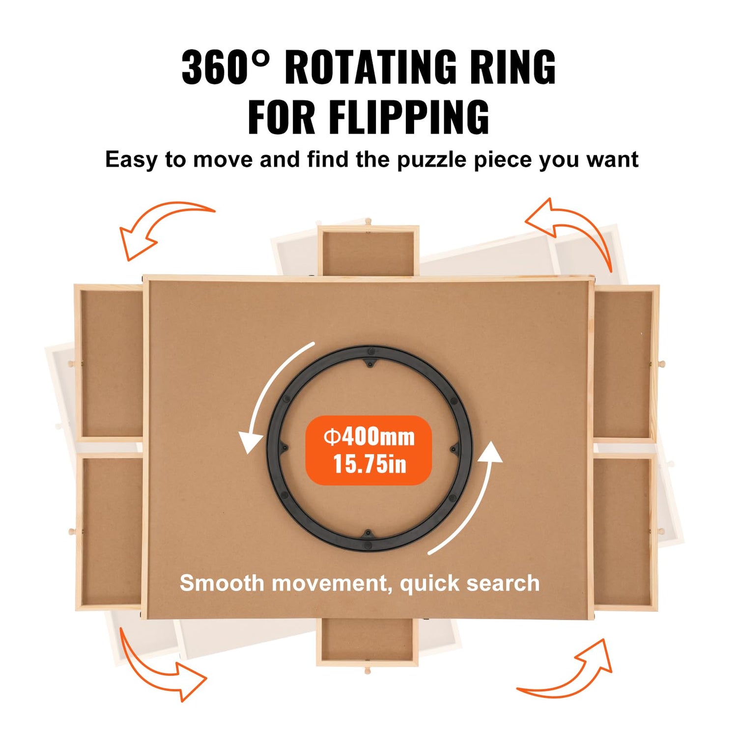 VEVOR 1500 Piece Puzzle Board with 6 Drawers and Cover, 32.7"x24.6" Rotating Wooden Jigsaw Puzzle Plateau, Portable Puzzle Accessories for Adult, Puzzle Organizer & Puzzle Storage System, Gift for Mom