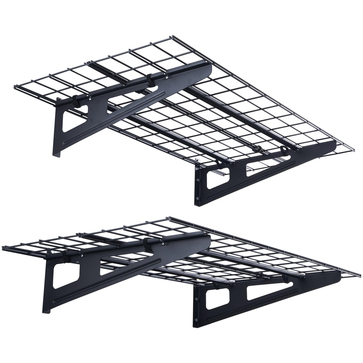 - 【Reinforced Construction】The garage shelving wall mounted is constructed entirely of metal with a sandblasted surface, featuring reinforced front-side beams and two additional steel wires measuring 47.64 x 24.41 x 7.87 inches (W x D x H) to accommodate more items.