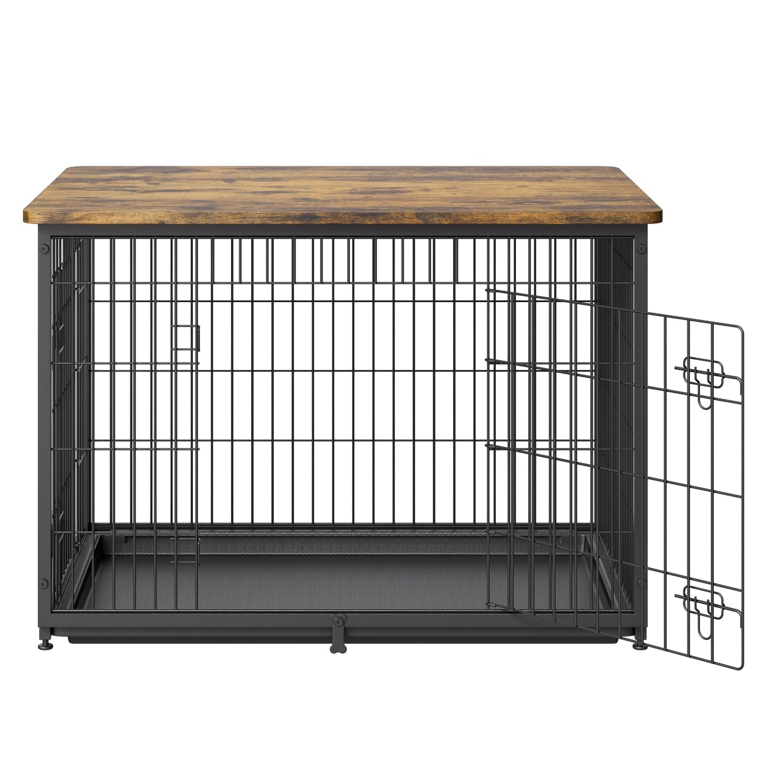 VEVOR 38" Dog Crate Furniture, Dog Kennel Furniture with Double Doors, 2-in-1 Decorative Wooden Dog Crate with Removable Tray, Dog Crate End Table Hold up to 70 lbs for Small, Medium Dogs Brown