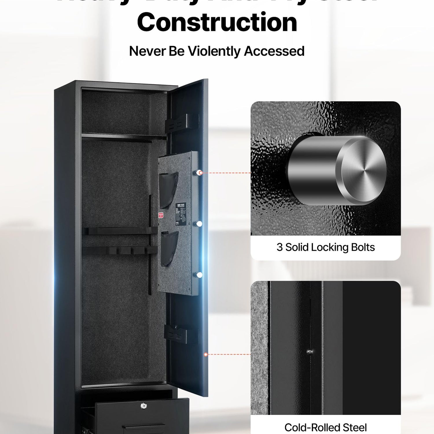 - Anti-pry Heavy-duty Cabinet: The rifle safe features a full steel construction with a 0.04 in / 1.1 mm thick anti-pry door plate, combined with 3 solid locking bolts to resist prying and damage. Pre-drilled mounting holes on the back allow for wall mounting