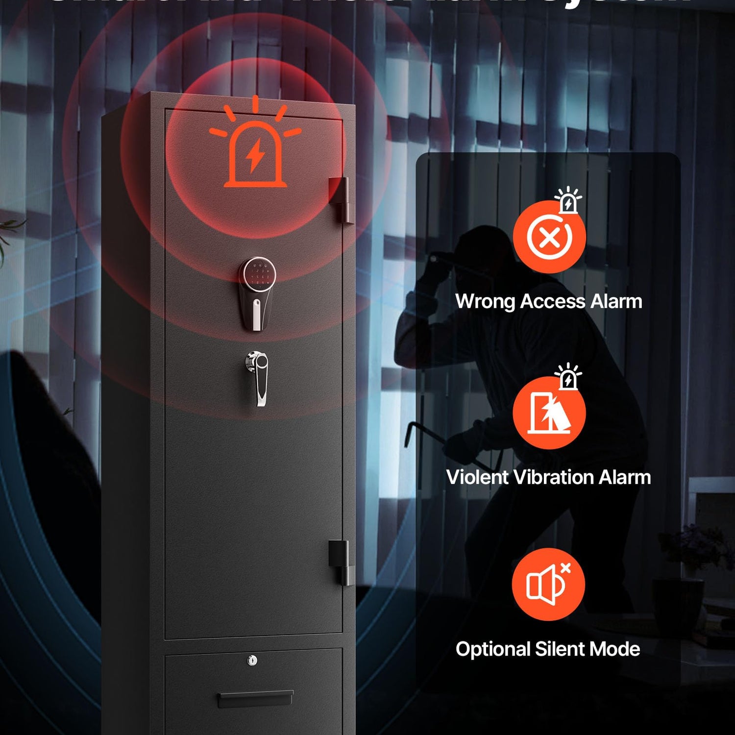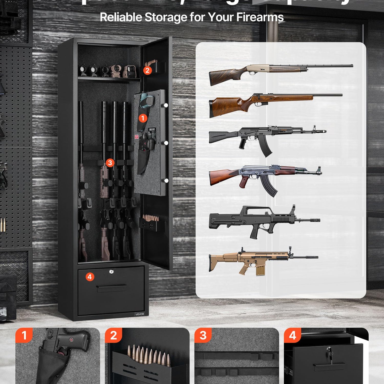 VEVOR 4 Gun Safe, Long Gun Cabinet for Rifles and Pistols, Quick Access Rifle Safe with 2 Ammo Slots, 2 Pistol Pockets & 2 Adjustable Racks, Large Digital Cabinet with Key and Password Lock