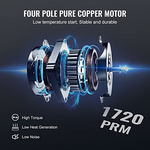 - 4-Pole Pure Copper Motor: The motor has high torque for more efficient operation. The T-shaped heat sink and cooling fan help the pure copper motor to effectively dissipate heat, allowing it to work continuously for over 2 hours. And with added overheat protection, you can enjoy the stabilized performance and longer service life for your motor.