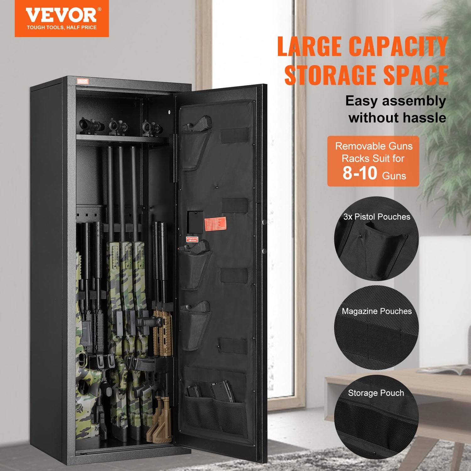 VEVOR 8-10 Rifles Gun Safe, Rifle Safe with Lock & Digital Keypad, Quick Access Tall Gun Storage Cabinet with Removable Shelf, Rifle Cabinet for Home Rifle and Shotguns