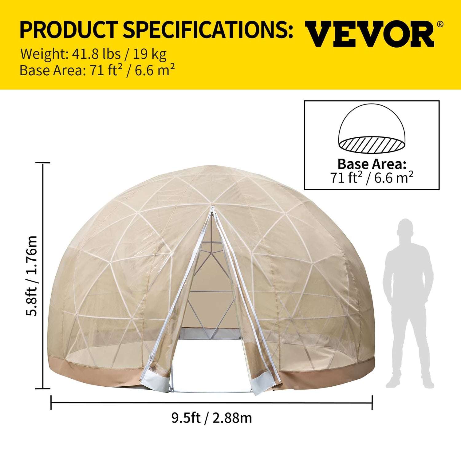 - 🌻🌻【BIG BUBBLE HOUSE】--9.5 ft x 9.5 ft x 5.8 ft H. 71 ft² base area provides a spacious interior shelter that comfortably fits 2-4 adults. The dome shape design is superior to conventional shaped rooms in sustaining better airflow, warming up quicker, and guaranteeing a consistent temperature inside.