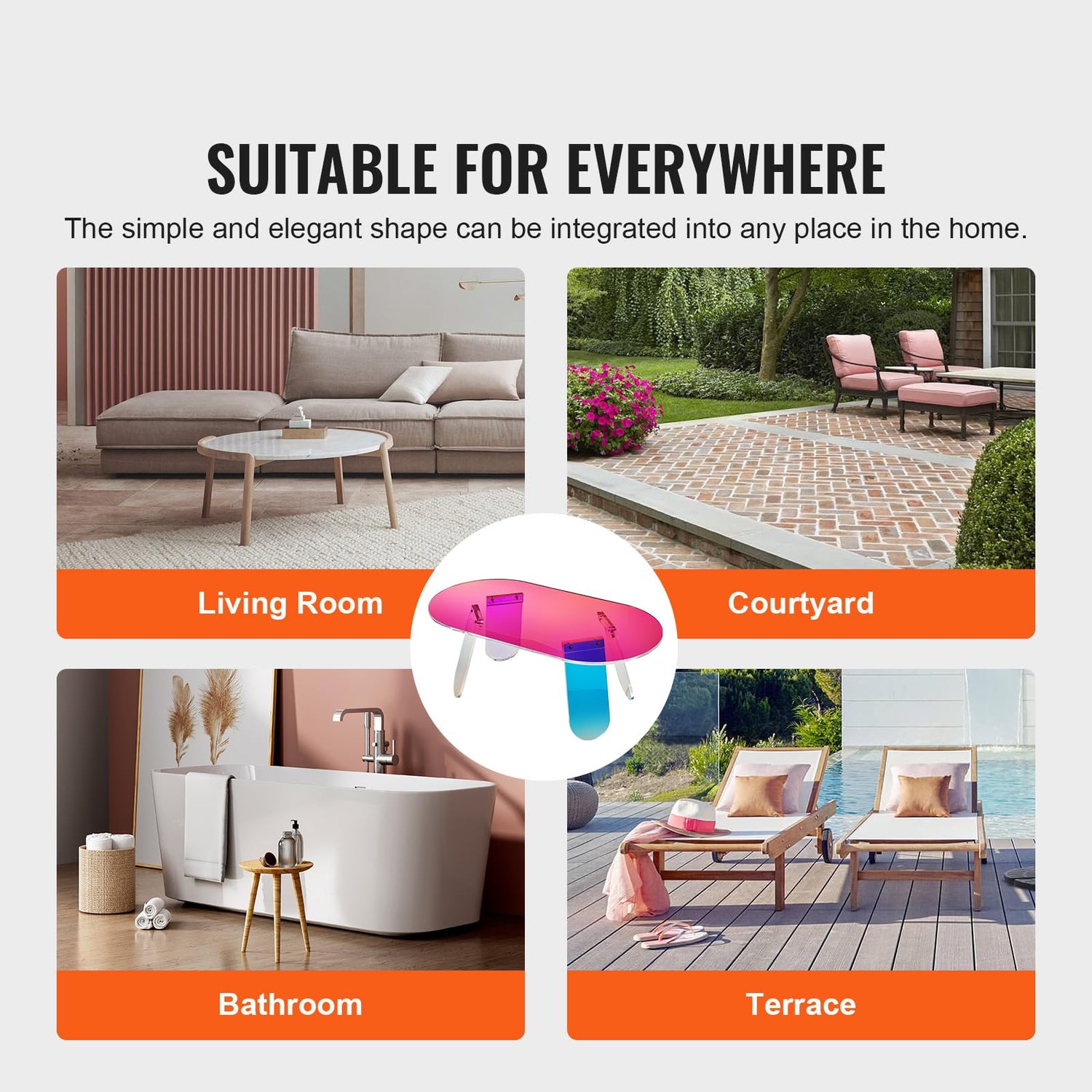 VEVOR Acrylic Coffee Table, Iridescent Acrylic End Table, Colorful Acrylic Side Table 37.4 in (L) x 19.7 in (W) x 13.8IN (H) for Coffee, Drink, Food, Snack Used in Living Room, Courtyard, Terrace