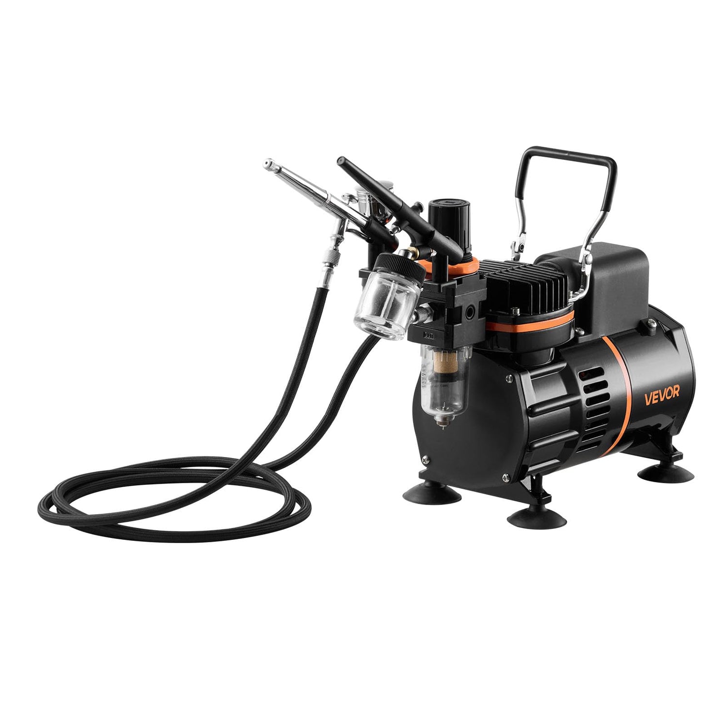 VEVOR Airbrush Kit, 1/6 HP, Air Brush Kit with Air Compressor, 3 Dual-Action Professional Airbrushes with 3 Tips, Hose, Acrylic Paint, 2 Fans, Low Noise, for Cake Decorating, Model Painting, Nail Art