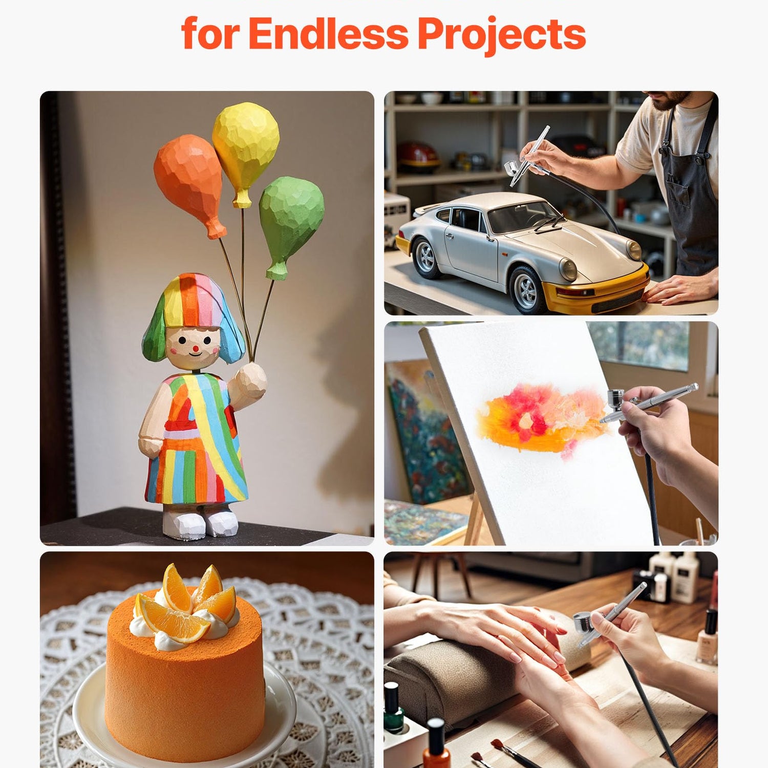 - Versatile for Endless Projects: Ideal for cake decorating, model painting, car detailing, nail art, canvas painting, and more. Whether you're a hobbyist or a pro, this airbrush set adapts to your creativity and suits artists, DIYers, and craft lovers