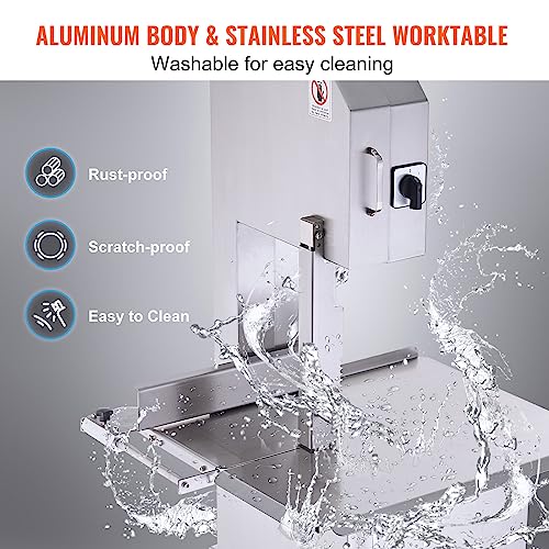 VEVOR Commercial Electric Meat Bandsaw, 2200W Stainless Steel Vertical Bone Sawing Machine, Workbeach 24.4" x 20.5", 0.16-8.7 Inch Cutting Thickness, Frozen Meat Cutter with 6 Blades for Rib Pork Beef