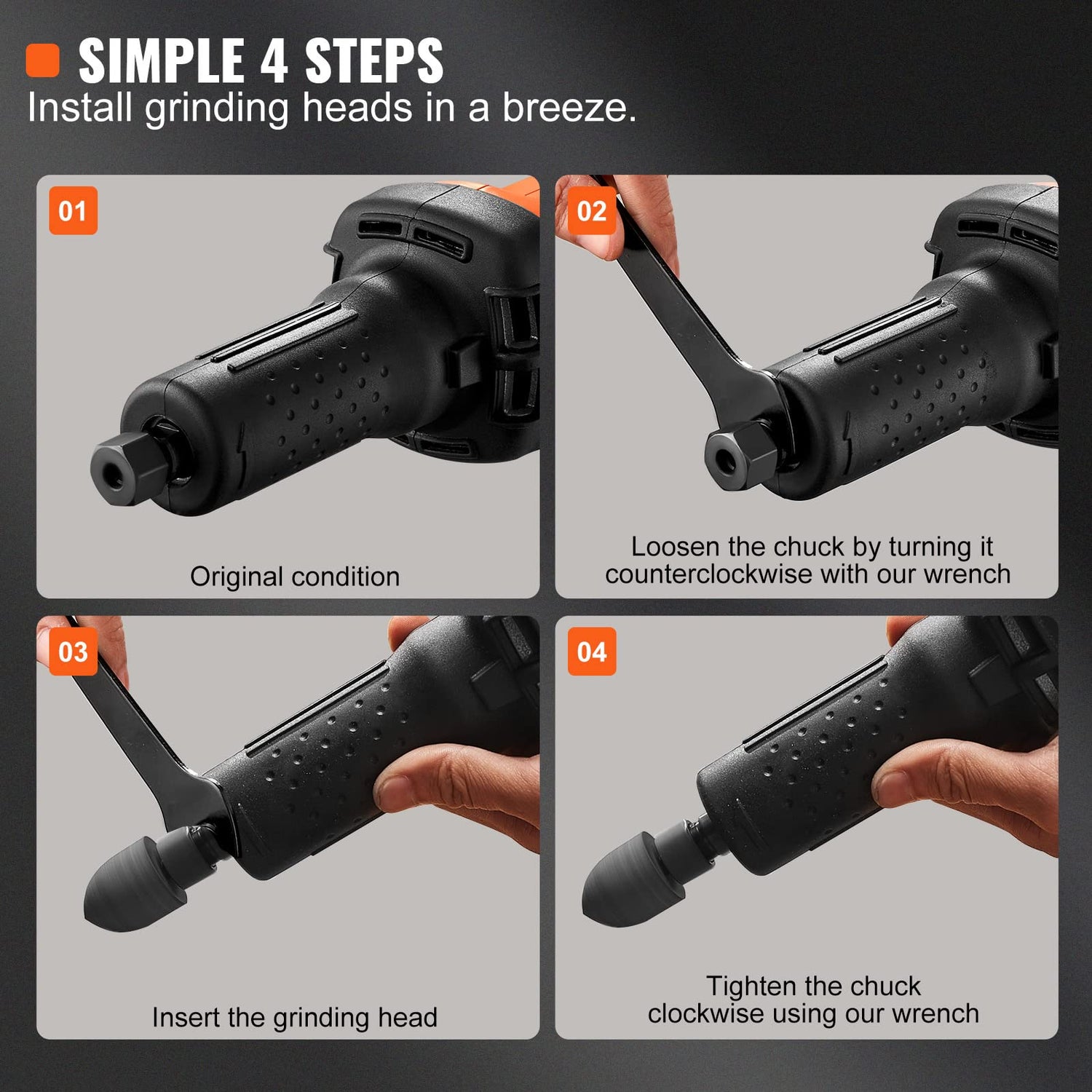- Multi-Functionality for Various Applications: Equipped with 1/4" and 1/8" collet heads, this die grinder is compatible with a variety of accessories, allowing for rust removal, polishing, sanding, grinding, milling, carving, and sharpening. It's a true multi-tasking tool for diverse applications.