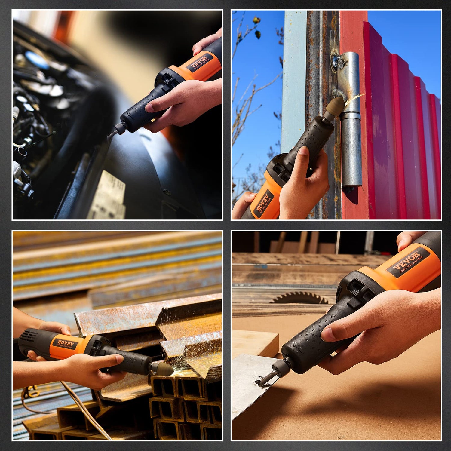 VEVOR Die Grinder, 1/4" Collet Variable Speed (10000-28000RPM), Heavy Duty Electric, Ergonomic Grip for Rust Removal, Grinding, Cutting, Polishing, Welding Repair, Deburring, with 1/4" & 1/8" Collets