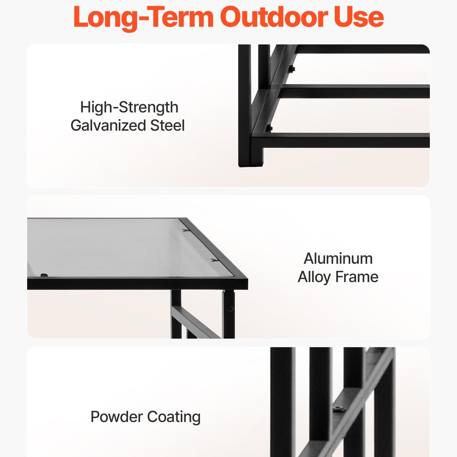 - Galvanized Steel & Aluminum Alloy Frame: Constructed with high-strength galvanized steel and aluminum alloy, the firewood holder frame is finished with a durable powder coating for excellent rust resistance. Engineered for long-term outdoor use, it won't easily warp or deteriorate over time.