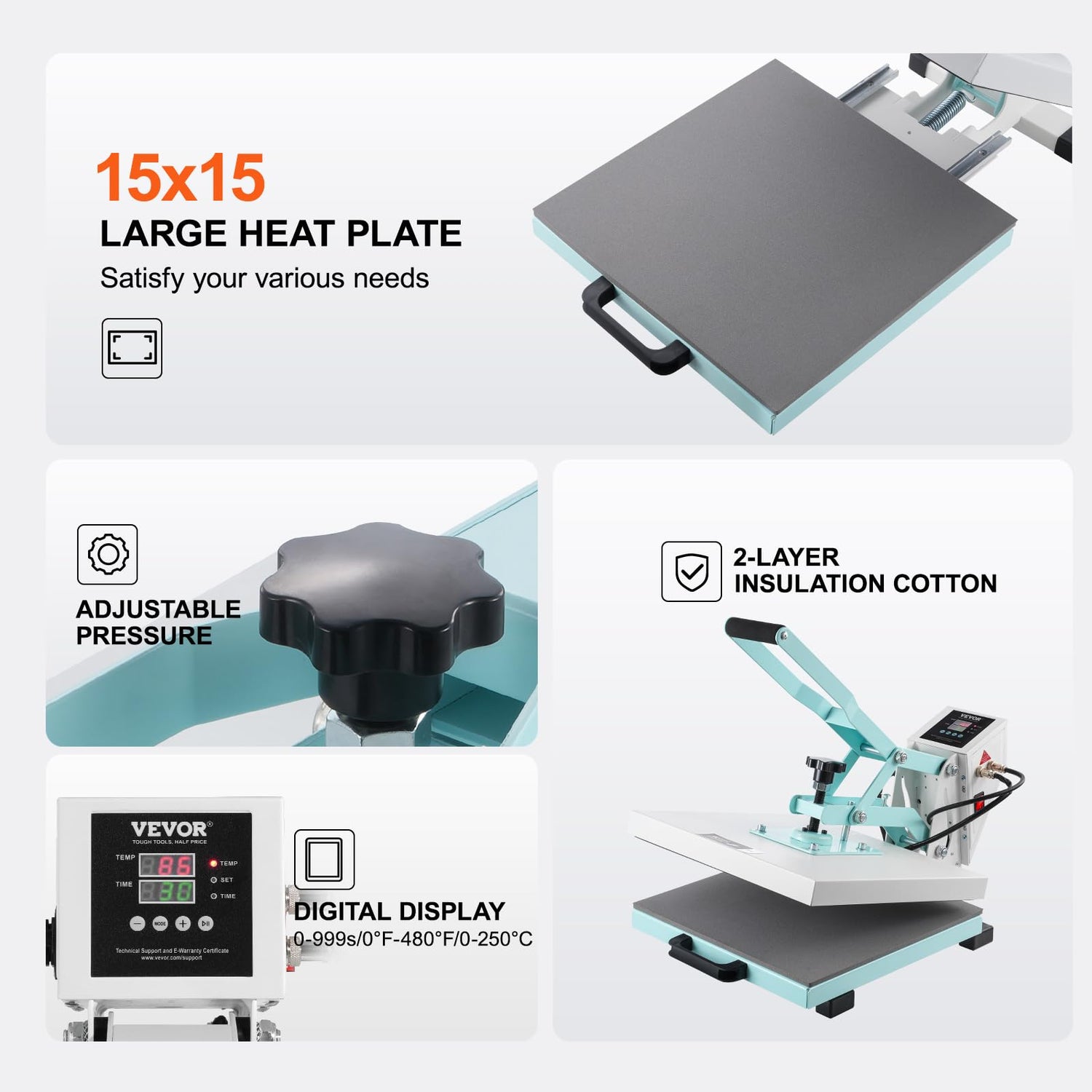 - 💪Large Heating Plate: The 15x15 inch heat plate, constructed from durable thick steel plate stamping and aluminum die-casting, offers excellent strength and longevity. The machine automatically beeps or powers off once the transfer is complete for added convenience.