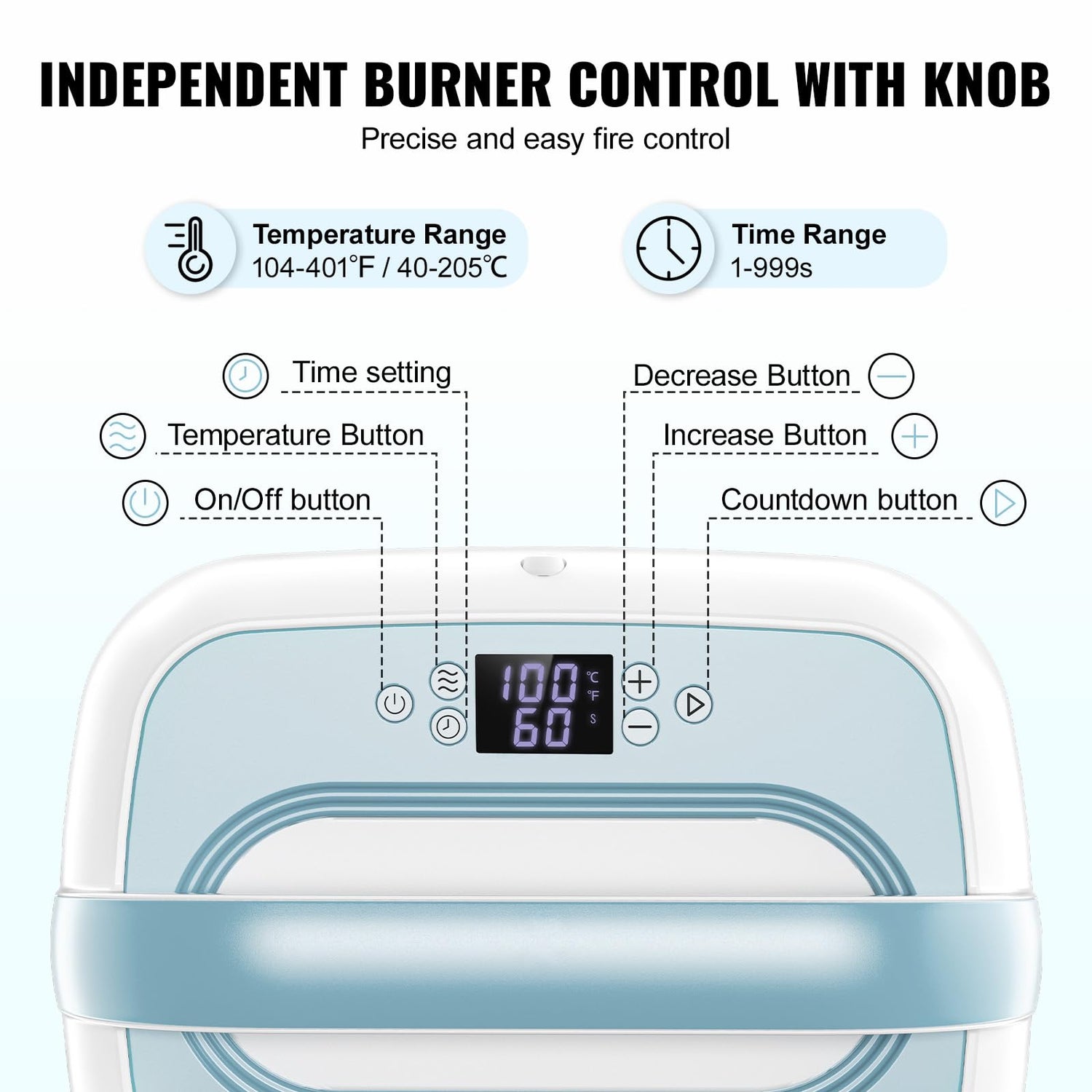- Precise Temperature & Time Control: This portable heat press features precise temperature control ranging from 104 - 401℉ (40 - 205℃), providing stable and even heat pressing results. Adjustable time from 1 to 999 seconds—whether a quick press for small areas or long processing for intricate patterns, it's all at your fingertips.