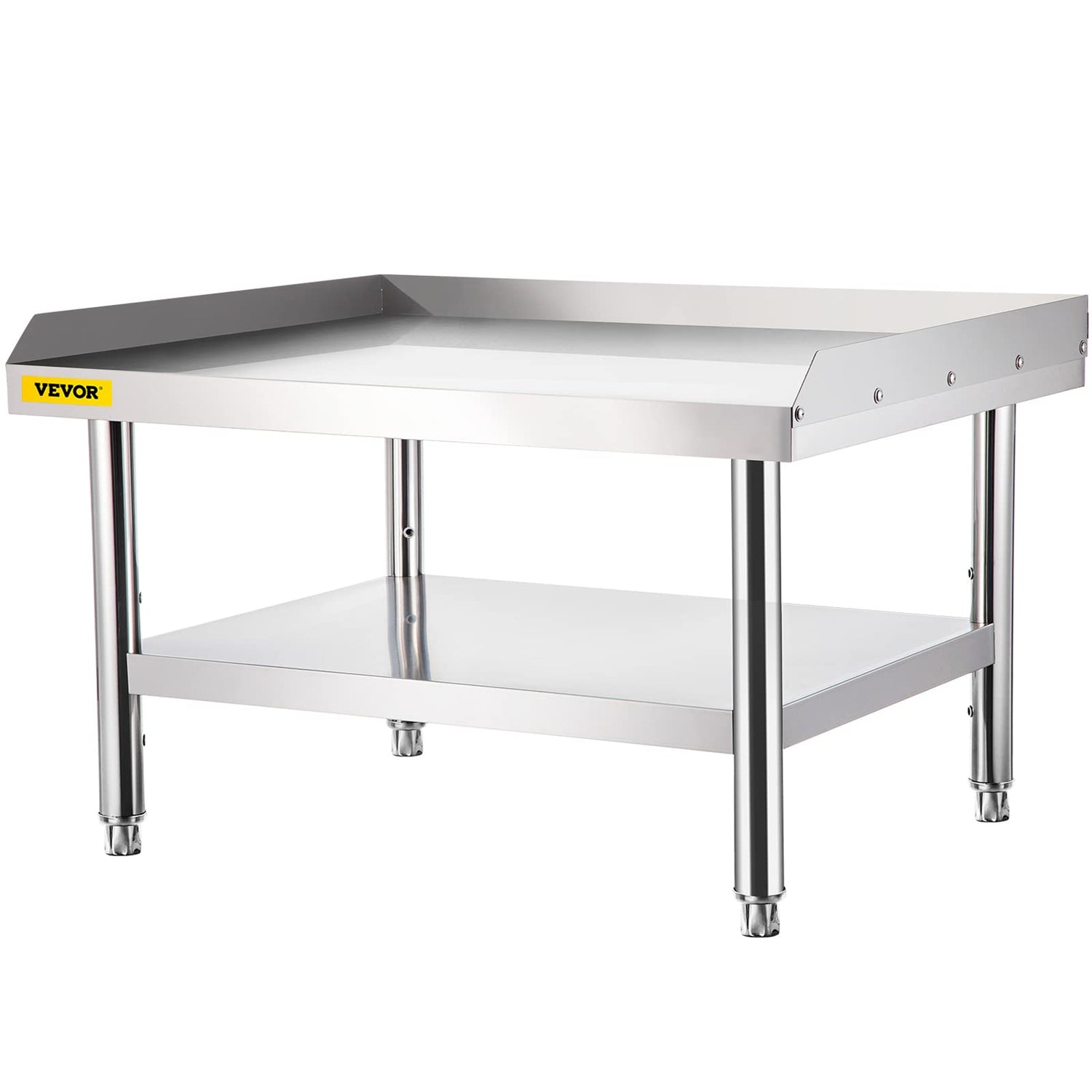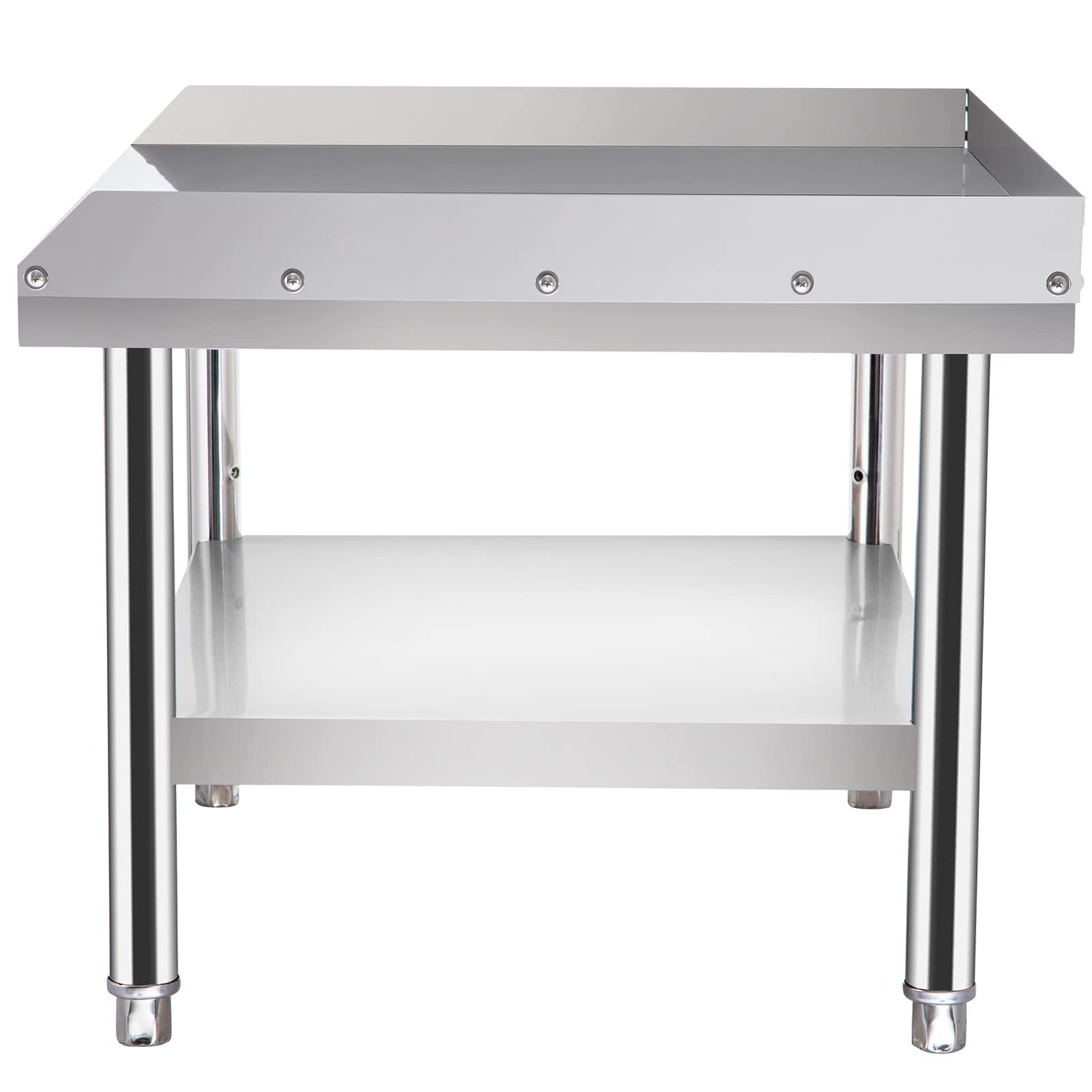 This stainless steel commercial equipment stand is designed with ample storage space to store everyday kitchen items. The upper workbench is used to prepare food, the lower storage shelf is used to put tableware, and the adjustable bottom shelf adjusts the storage height from 9.8" to 13.8" to place more oversized items.