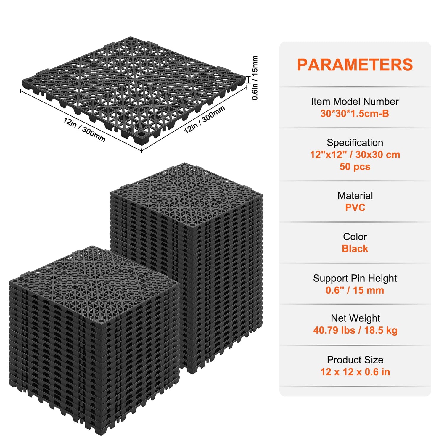 - Efficient Drainage: Our 50pack interlocking drainage mats, each measuring 12x12 inches, feature upgraded 0.6-inch (15 mm) support pins to ensure rapid water drainage. Say goodbye to bothersome surface water buildup and enjoy a fresher, odor-free environment. These waterproof drainage floor tiles provide a non-slip surface for added safety.