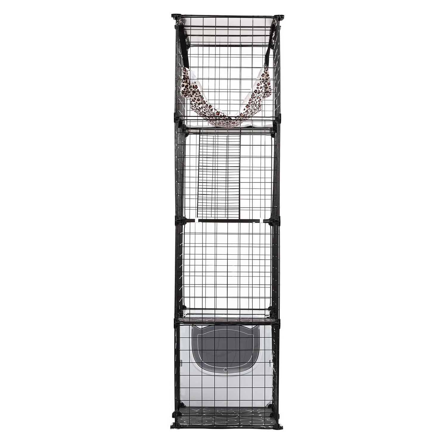 - Extra Large Cat Cage: Sized at 41 x 14 x 55", this cat enclosure renders ample space for your cats to play and rest. Features 4-tier and 3 front doors for entering, playing and resting. For intimate contact with your cat, you can use this cage indoors, outdoors, or on the patio.