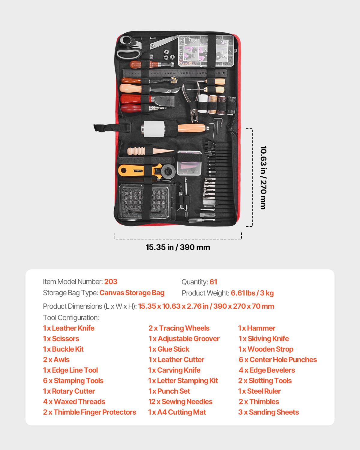 VEVOR Leather Working Tools Kit, 61 PCS Leather Craft Tools with Portable Canvas Storage Bag, Engraving Punching Sewing Stamping Sanding Tools, Ideal for Beginners DIY Enthusiasts and Professionals