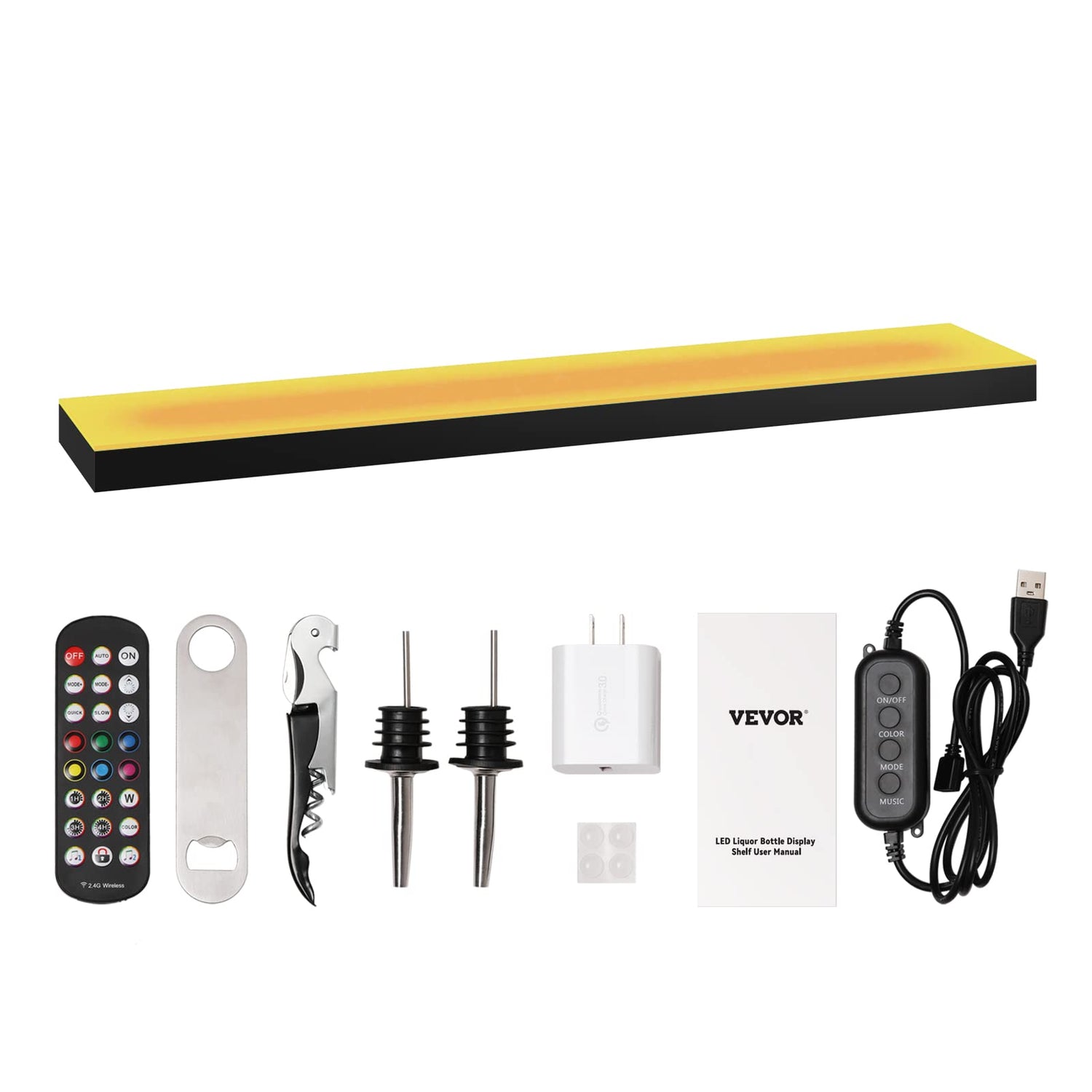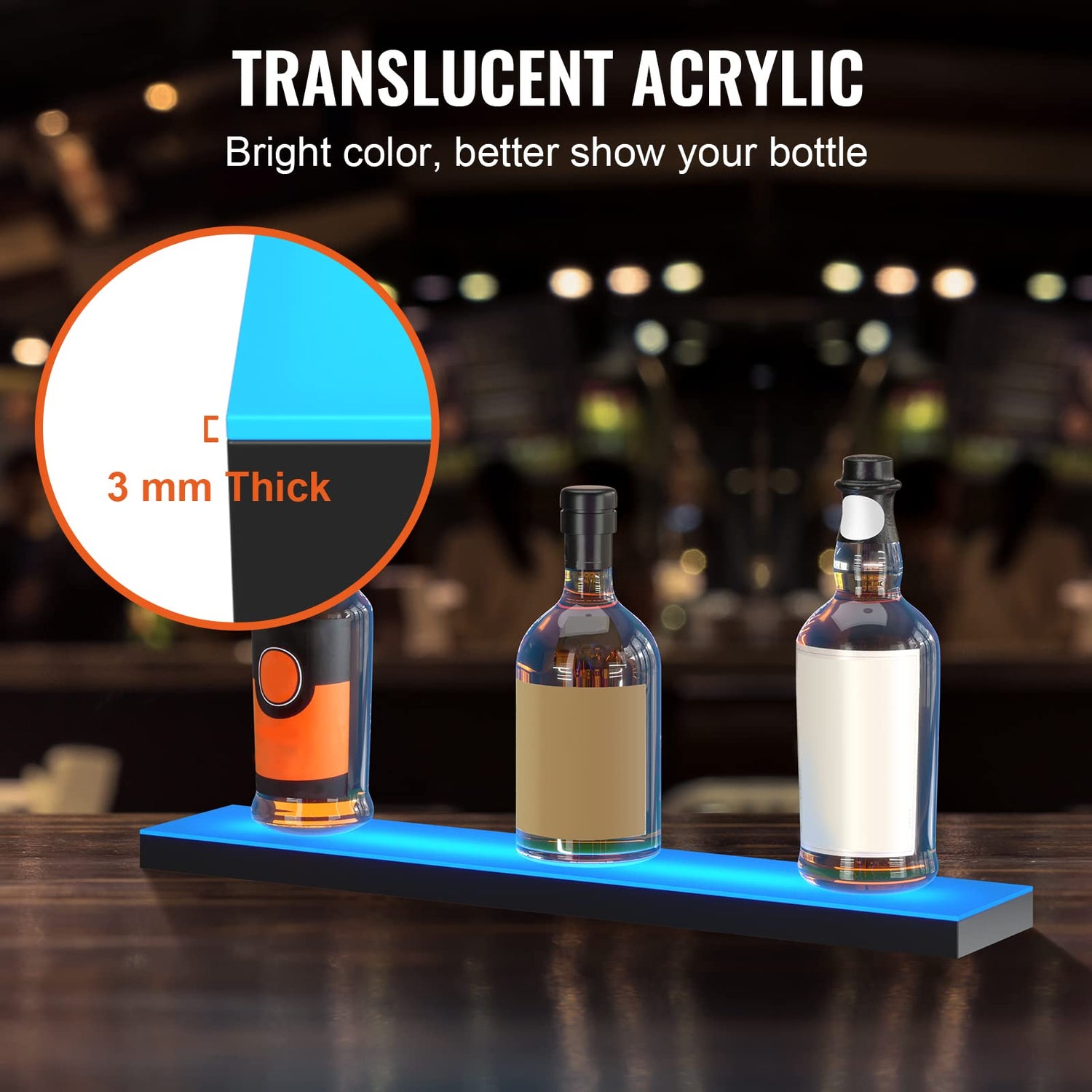 VEVOR LED Lighted Liquor Bottle Display Shelf, 24-inch LED Bar Shelves for Liquor, 1-Step Lighted Liquor Bottle Shelf for Home/Commercial Bar, Acrylic Lighted Bottle Display with Remote & App Control