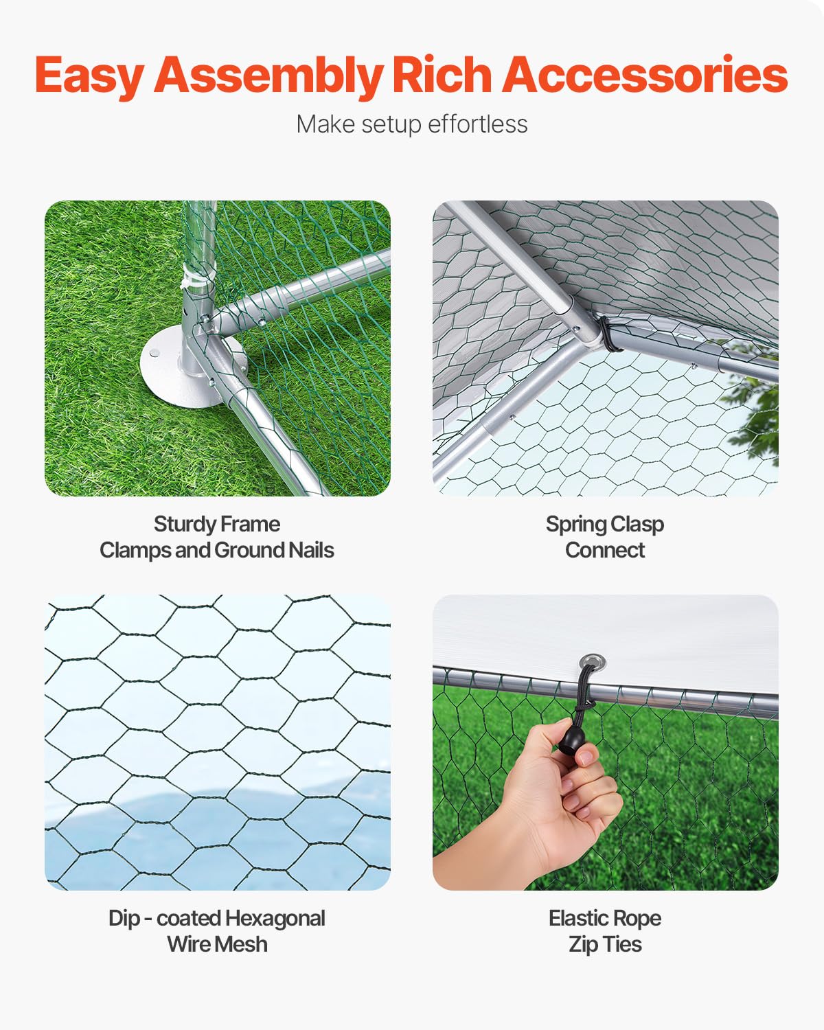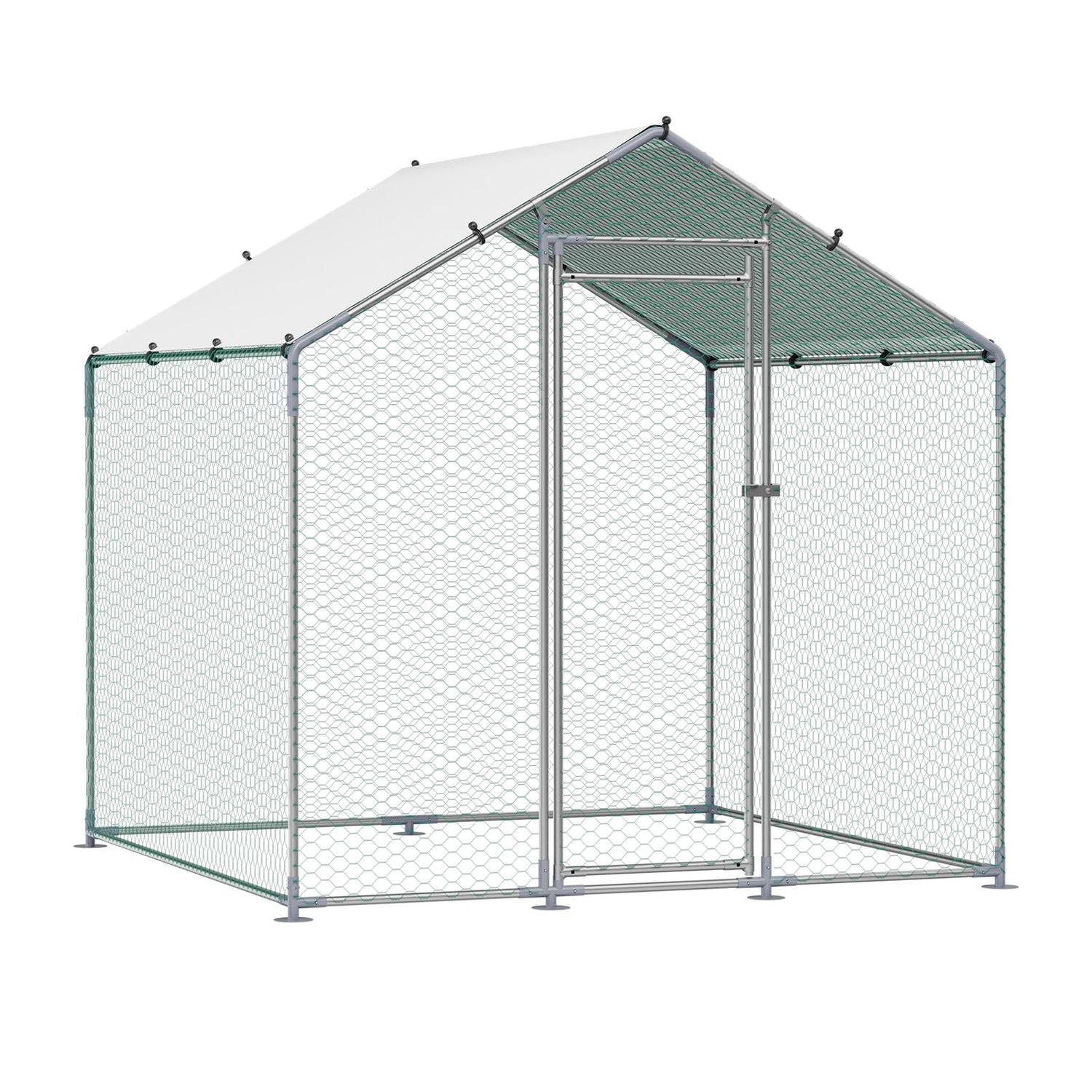 - Sturdy Structure: With 1" thick galvanized steel pipes and precise welding, this chicken run boasts stability and wind resistance. The top cover facilitates effective drainage, preventing water accumulation. Reinforced with hexagonal protective mesh, it provides a secure space for the poultry.