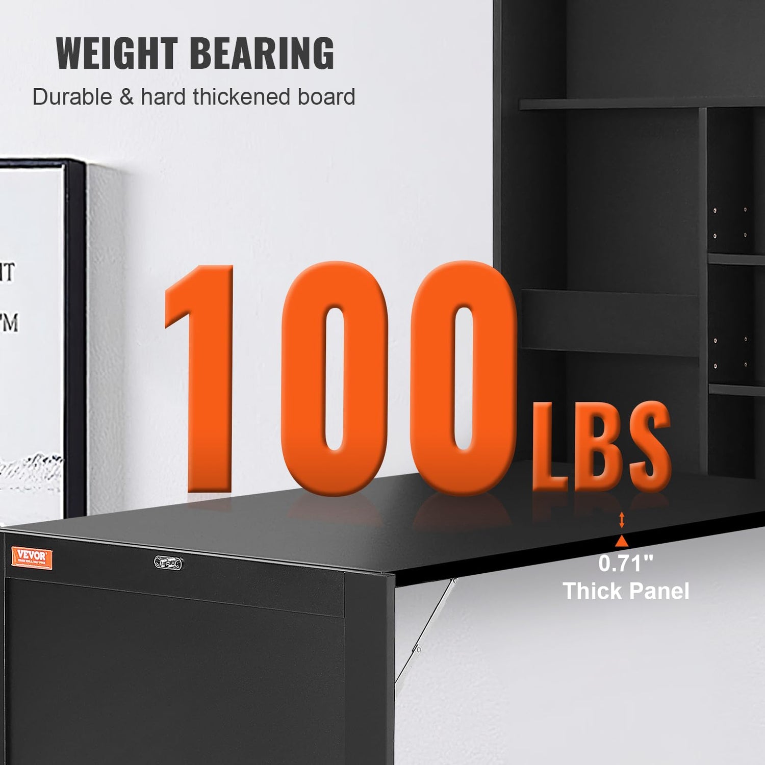 VEVOR Mounted Convertible, Multi-Function Folding Wall Table with Chalkboard for Home Office, Space Saving Computer Desk with Storage Area, Black