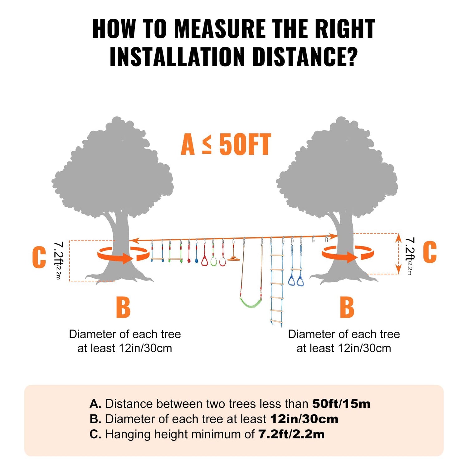 - Quick Installation and Disassembly: The outdoor playset equipment can be assembled in just 5 minutes. There's no need for a wide flat area in your yard; just fix it between two trees or poles 20 to 40 feet apart to start customizing your obstacle challenge game! It's an ideal alternative to traditional playgrounds, offering a convenient and flexible backyard challenge game for children of various ages and skill levels.