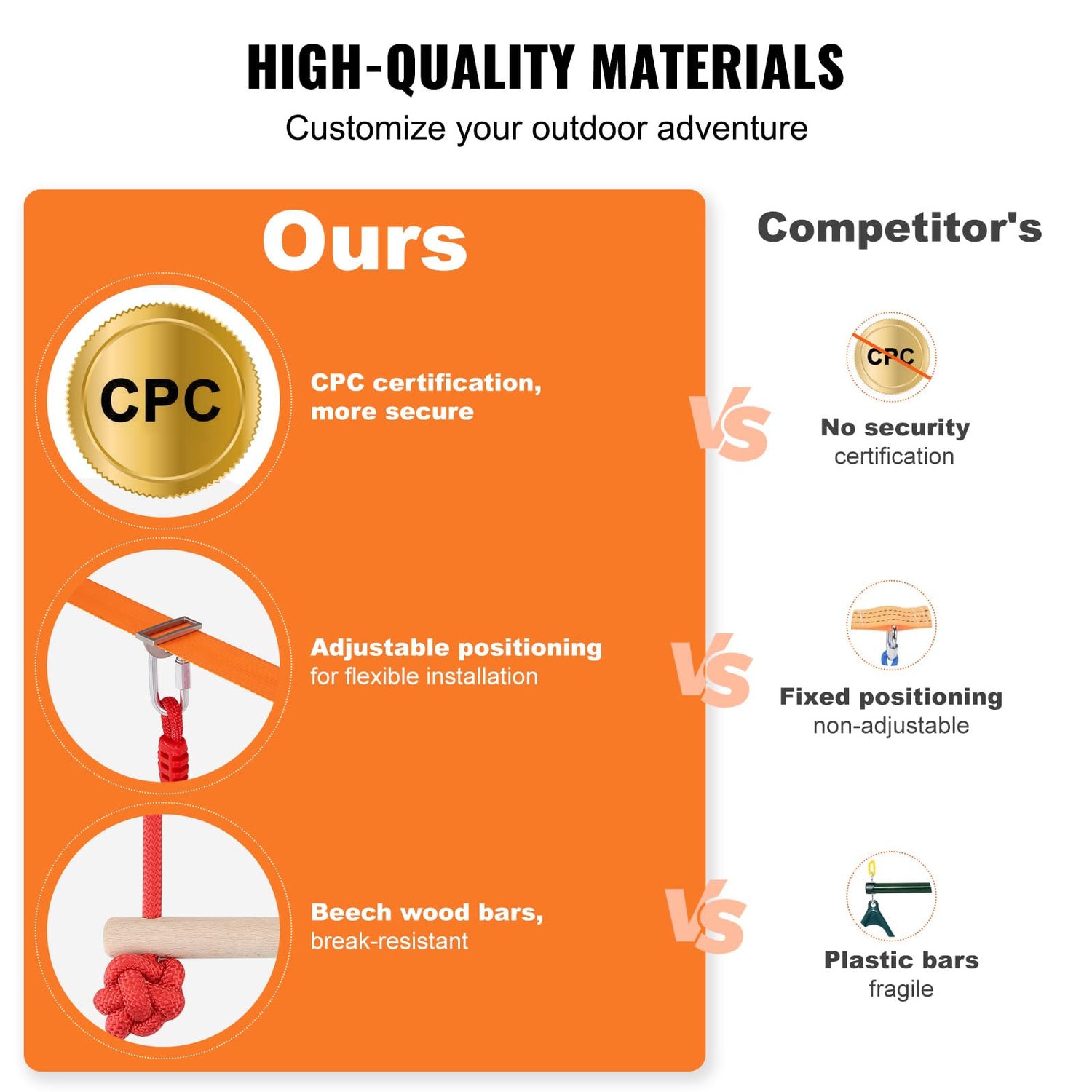 - Safety Design: Each backyard training equipment set can support up to 500 pounds, sufficient for two or more children to use simultaneously. The upgraded die-cast buckle straps, tensioners, and wider, thicker straps solve the issue of sagging ropes, securely locking onto trees to ensure children's feet don’t touch the ground for a worry-free play experience. The double-layer thermoplastic straps ensure the product doesn’t crack, providing a safe and sufficient gripping experience for children.