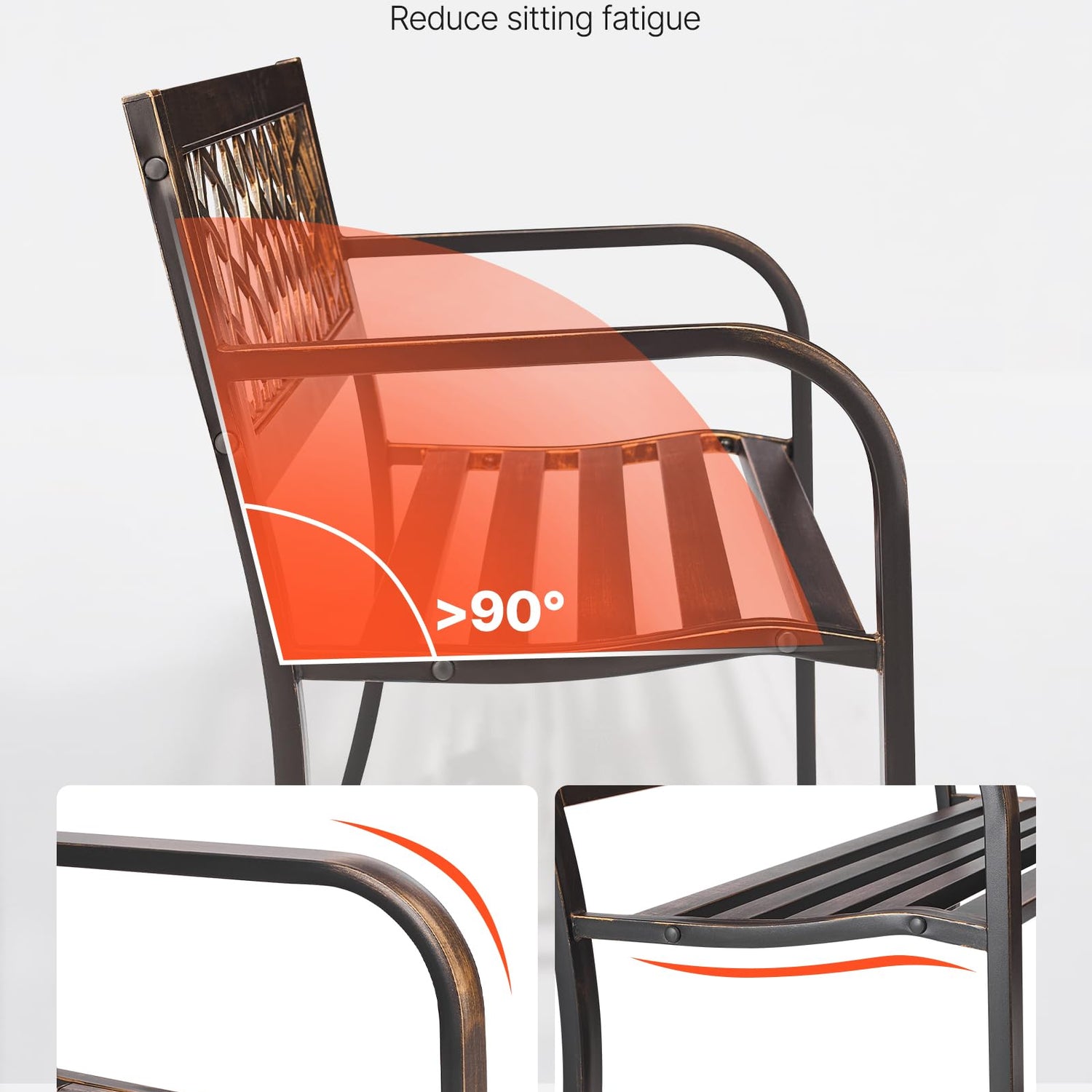 - Comfortable Seating: Measuring 46 inches and supporting up to 550 lbs, this porch bench comfortably seats two people. The curved seat relaxes your hips and legs, while the >90° backrest and armrests encourage a more natural and open posture
