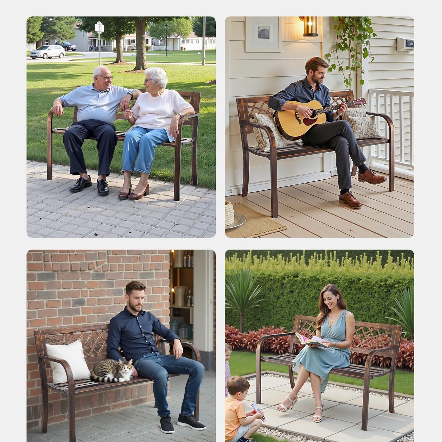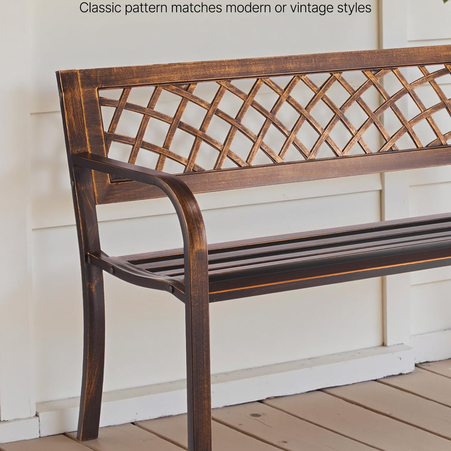 - Simple Yet Elegant: The patio bench showcases a refined mesh-pattern backrest with a classic antique bronze finish, adding charm and character to your outdoor seating area. Smooth edges avoid snags and ensure a polished look