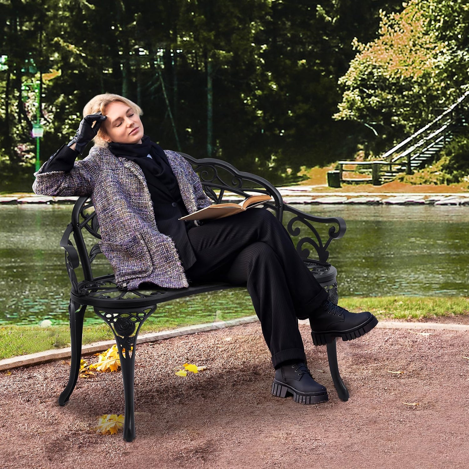 VEVOR Outdoor Bench, 480 lbs Load Capacity Bench, 38.8 inches Metal Garden Bench for Outdoors,Outdoor Garden Park Bench with Backrest and Armrests, Patio Bench for Garden, Park, Yard, Front Porch