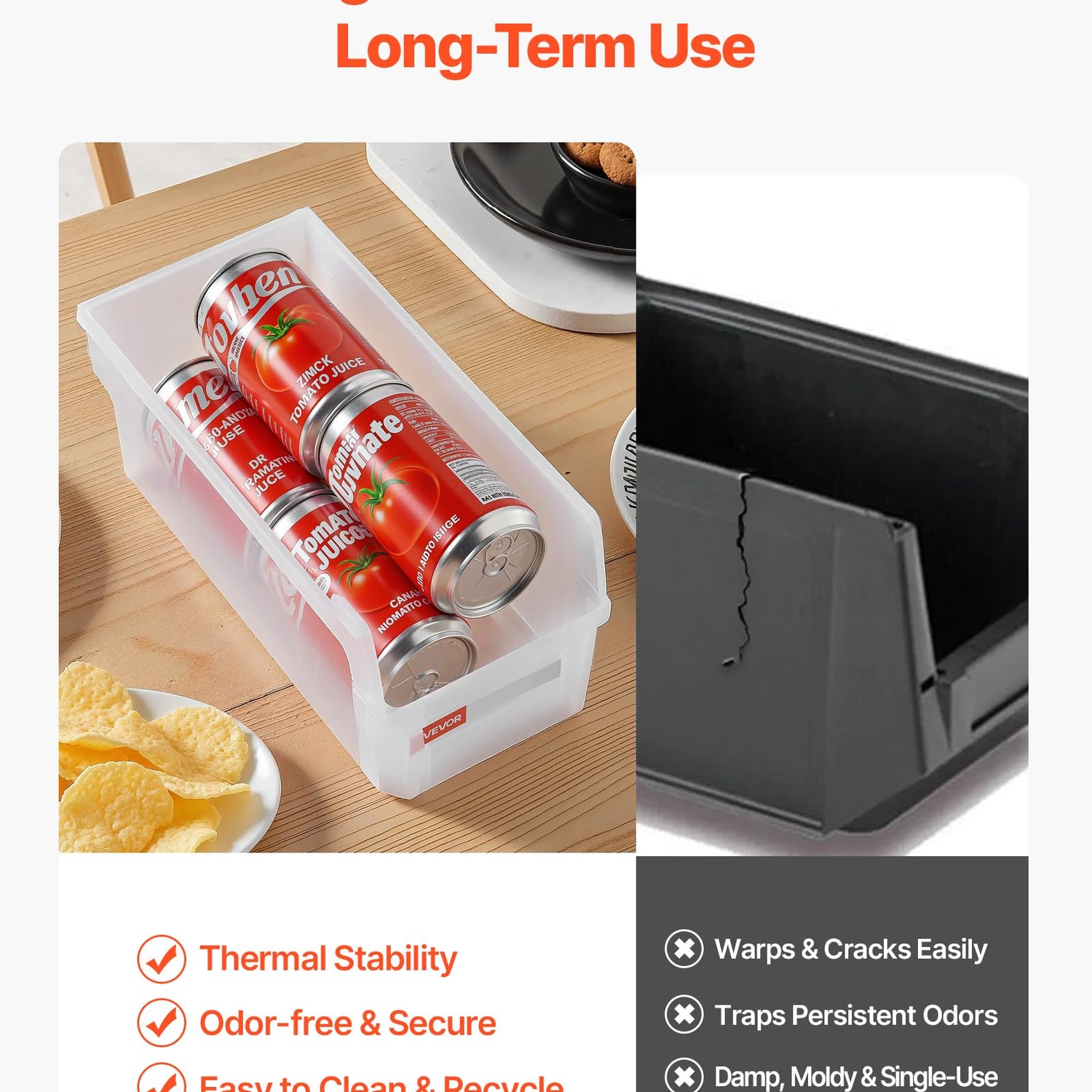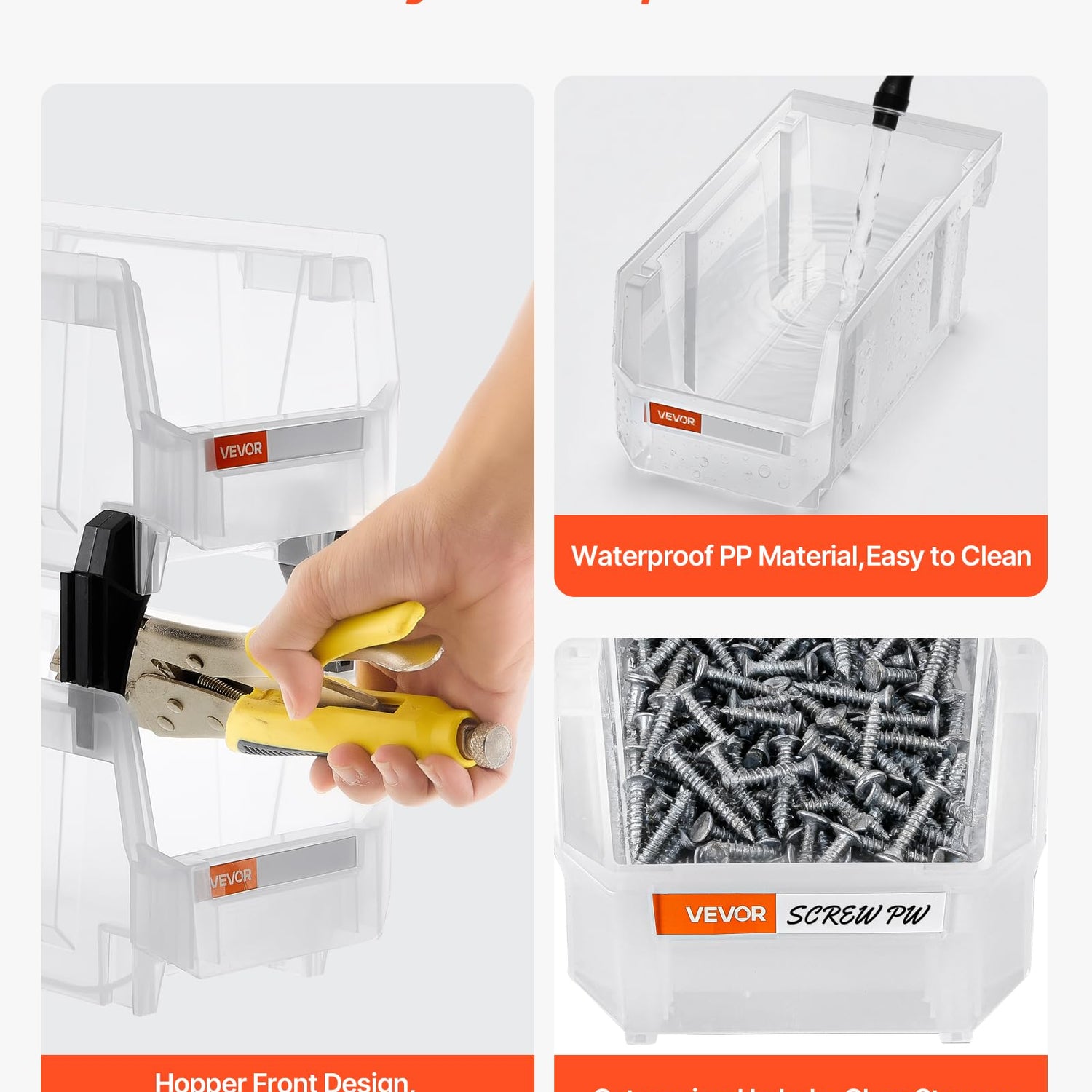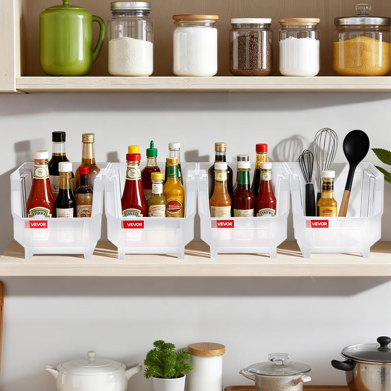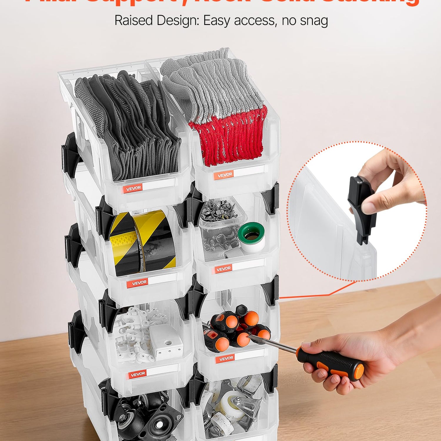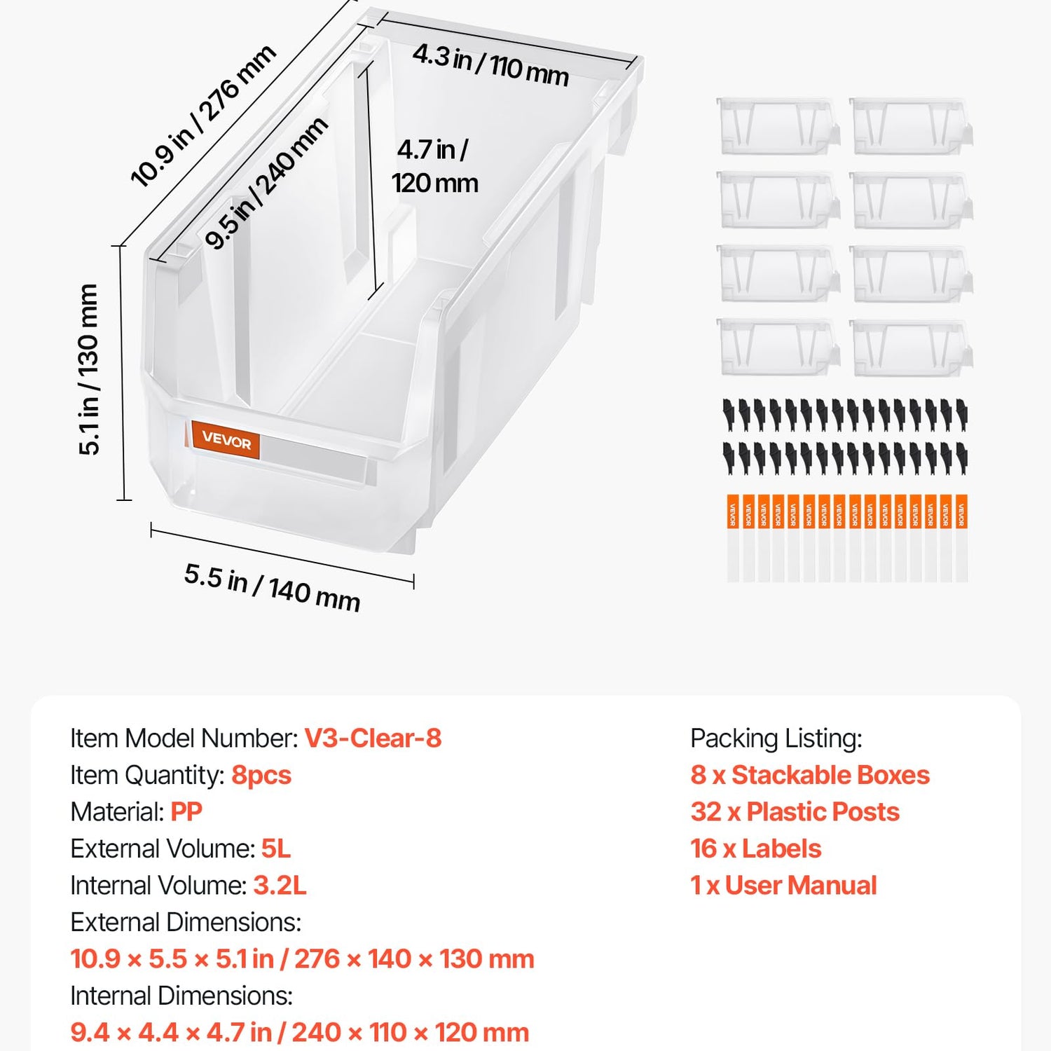 VEVOR Plastic Stackable Storage Bins, 10.9 x 5.5 x 5.1 inch (8 Pack), Plastic Containers for Organizing & Storage Bins for Closet, Garage, Small Parts, Office Supplies, Other Accessories, Transparent