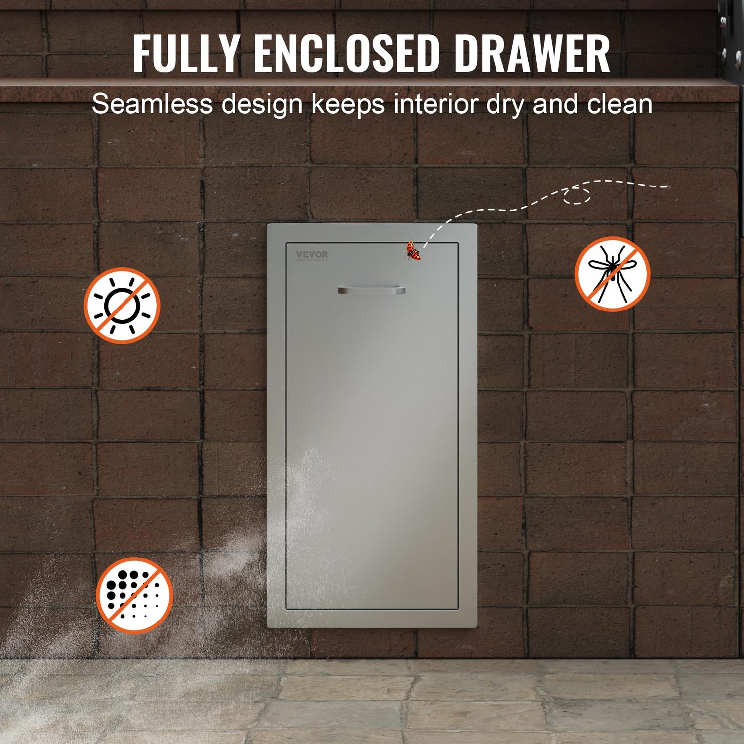 VEVOR Pull Out Trash Drawer 13.4"W x 25.7"H x 19.6"D Lower Sliding Rails Stainless Steel Roll Out Trash Bin Pull Out Tray Outdoor Kitchen Trash Drawer with Handle for BBQ Island Grill Station