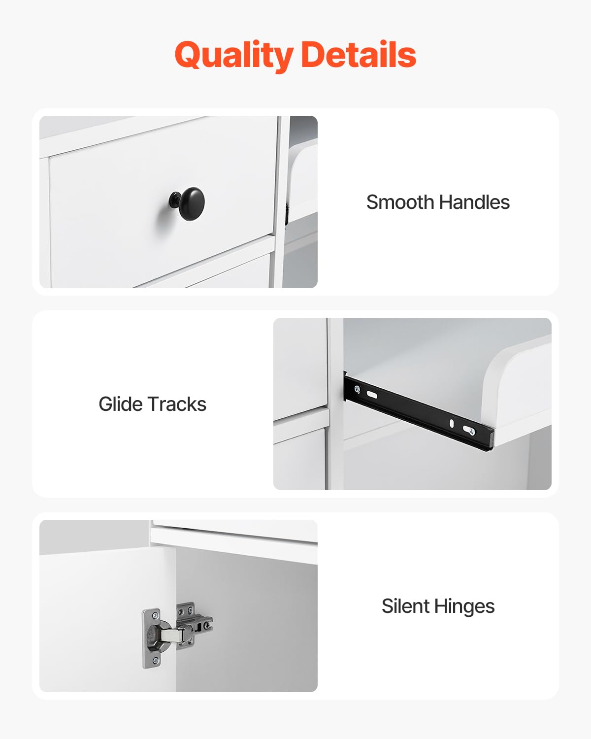 - Smooth Sliding Drawers: This reception table has high-quality metal slide rails, ensuring the drawers open and close smoothly with minimal noise. This design adds extra storage space and enhances comfort and ease of use during everyday tasks.
