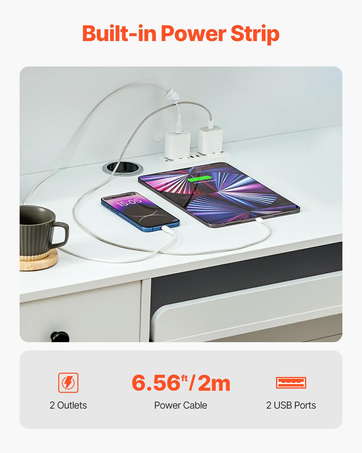 VEVOR Reception Desk, 47 Inch Rectangular Front Counter Table, Office Reception Desk with LED Light, 2 Drawers and Power Outlets, for Checkout, Lobby, Beauty Salon and Office, White