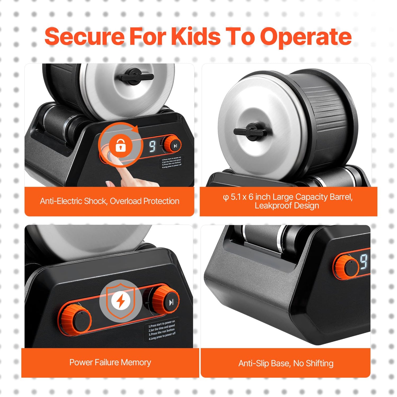 - Smart Safety Design: The stone tumbler features an upgraded curved lid design for easy and hand-secure twisting. The high-seal chamber prevents water leakage and keeps your workspace clean. It also features a grooved handle for easy lifting and anti-slip pads to keep the machine stable during powerful operation.