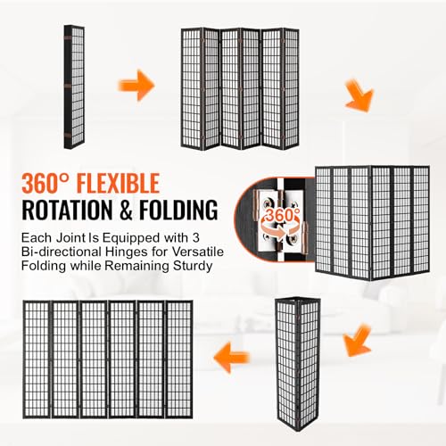 VEVOR Room Divider, 6 Panel Japanese Room Divider, Folding Privacy Screen Indoor, Portable Partition Dividers and Decoration Screens, for Room Separation, Home, Office, Restaurant & Bedroom (Black)