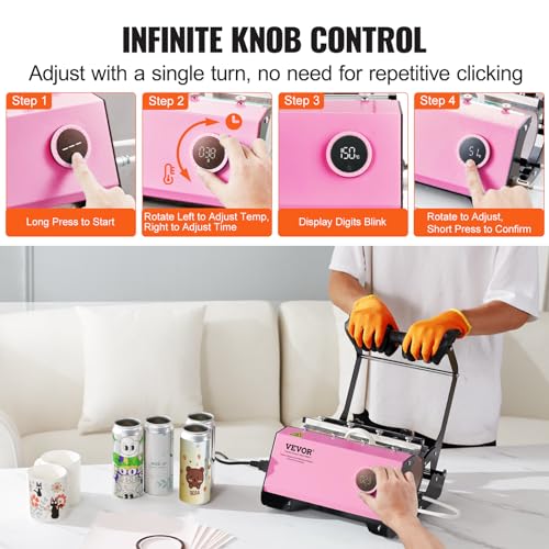 VEVOR Tumbler Heat Press Machine, Tumbler Press for 30OZ 20OZ Sublimation Straight Skinny Tumblers, with Knob Control Temp&Timer Setting for 11-16oz Mugs, Mug Press with Paper Heat Tape Gloves-Pink