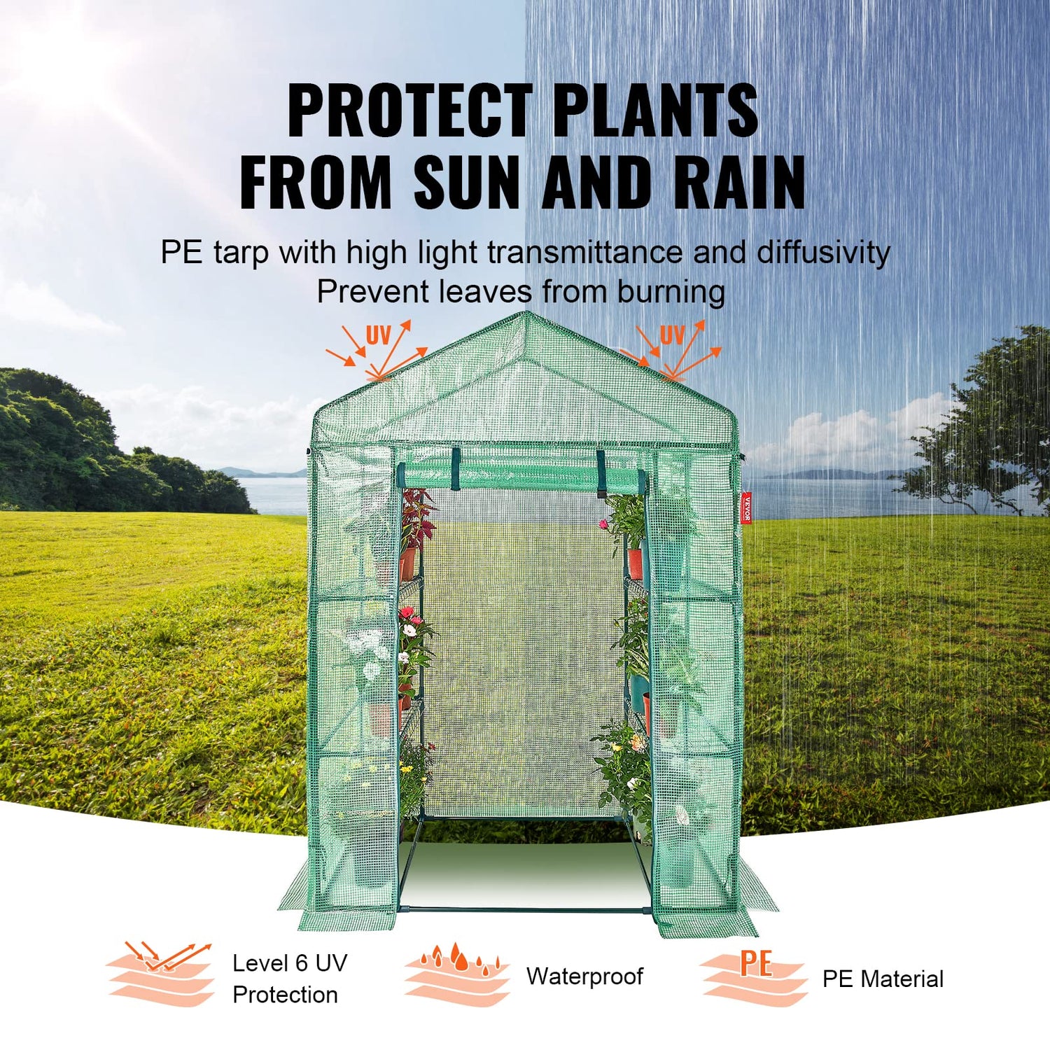 VEVOR Walk-in Green House, 55.5 x 29.3 x 80.7 inch, Portable Greenhouse with Shelves, High Strength PE Cover with Roll-up Zipper Door and Steel Frame, Set Up in Minutes, for Planting and Storage