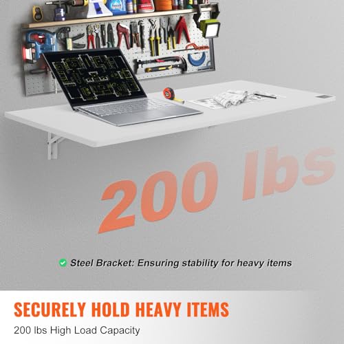 VEVOR Wall Mounted Folding Table, 47.24" x 19.69" Wall Mount Drop Leaf Table, Floating Desk with Iron Bracket, Fold Down Desk for Small Spaces, Home Office, Dining, Laundry Room, Kitchen, Bar, White