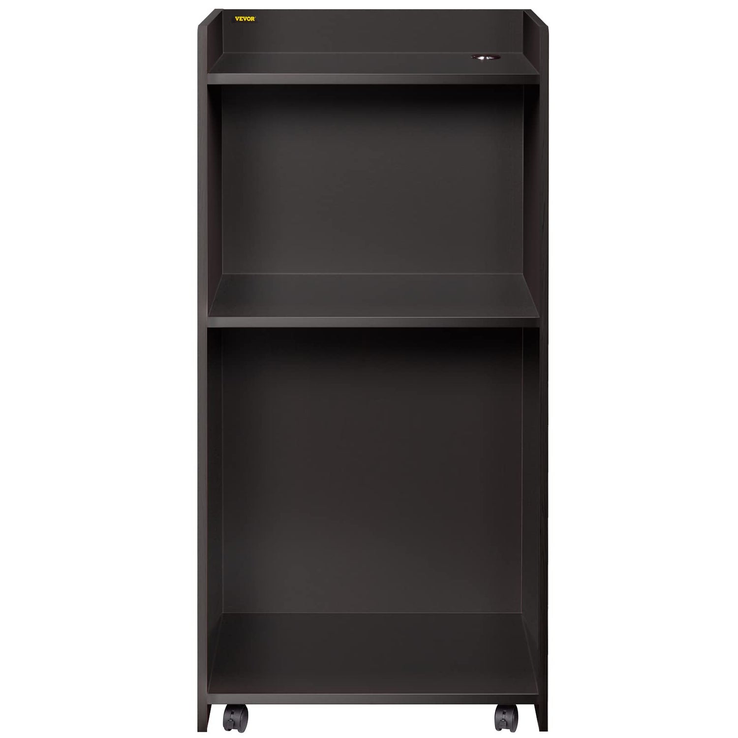 VEVOR Wood Podium, 23.6" x 47.2", Lecterns and Podiums with 4 Rolling Wheels, Flat Surface, Baffle Plate & Shelf, Easy Assembly Ebony Lecterns for Church, Office, School, Home Black