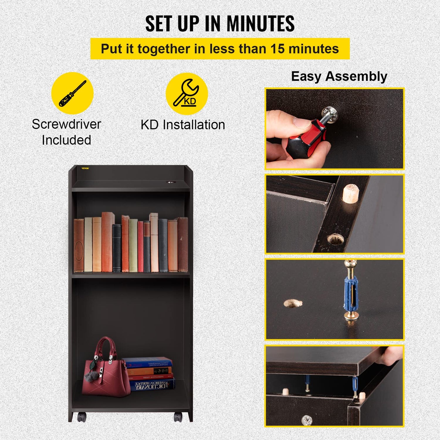 - Assemble in a Breeze: The podium with wheels comes with clear instructions and a screwdriver. The different size screws all have a place to fit, and the detailed instruction manual saves your time and energy.