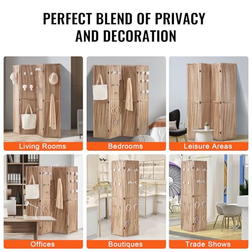 - Modern Minimalism: This 64-inch room divider features four sleek panels, providing ample privacy to make your life more relaxed and free. The pegboard design allows you to hang your favorite items, keeping your space tidy and inviting.