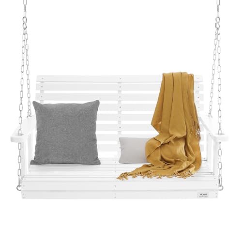 VEVOR Wooden Porch Swing 4 ft, Patio bench swing for Courtyard & Garden, Upgraded 880 lbs Strong Load Capacity, Heavy Duty Swing Chair Bench with Hanging Chains for Outdoors, White