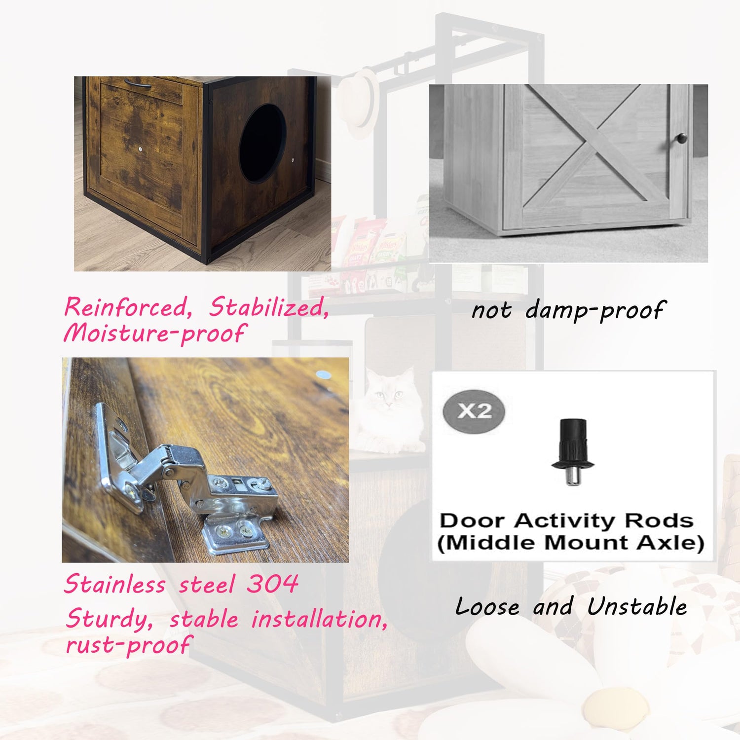 - Sturdy Durable Material:Litter box enclosure constructed from high-quality, thickened metal pipes (0.8mm) and MDF boards,sturdy and durable.The metal frame is coated with anti-rust paint for enhanced stability, supporting up to 150 pounds.The rustic wood finish adds a modern industrial touch, making this hidden litter box a perfect fit for any indoor decor