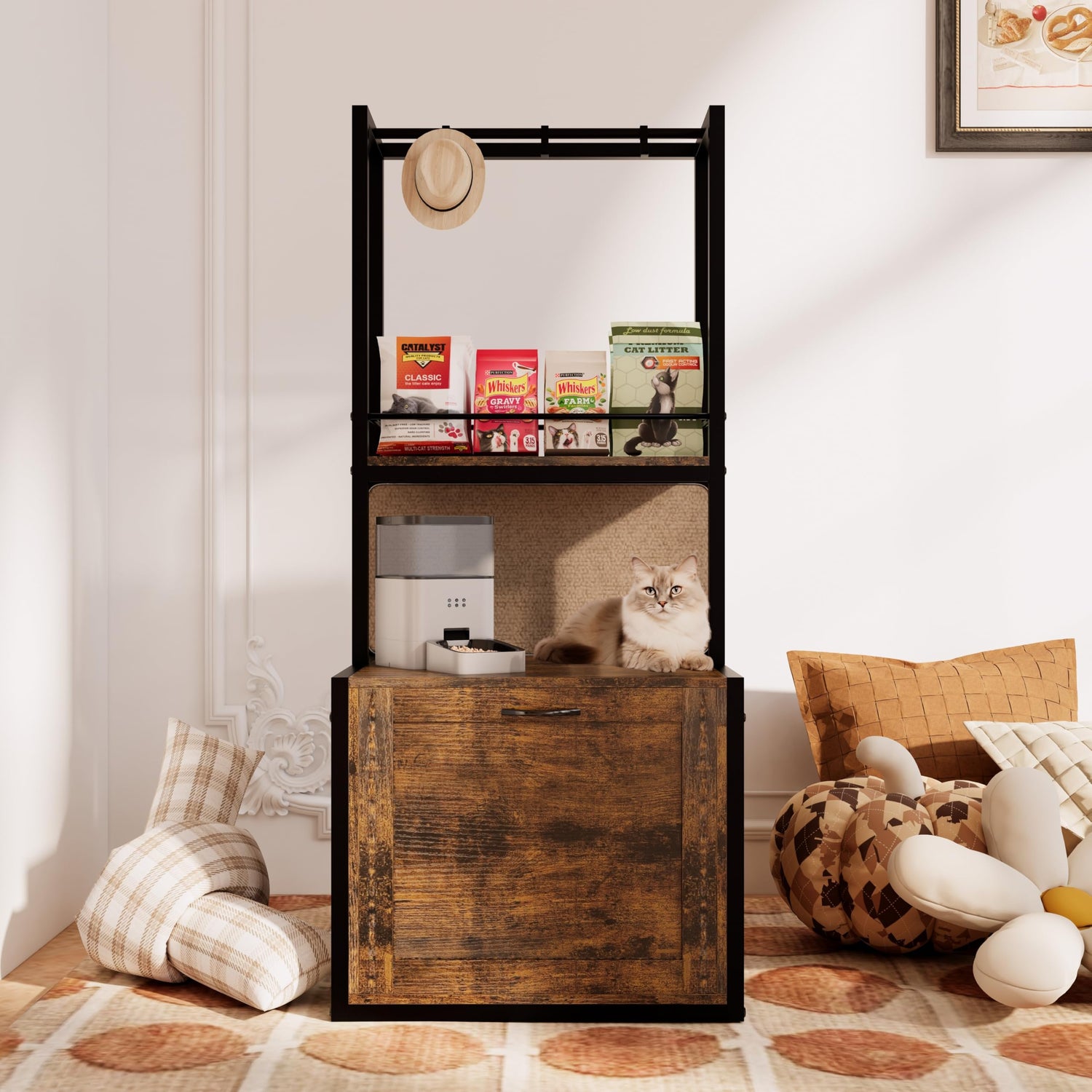 - Multi-Functional Litter Box Enclosure Furniture:Our litter box storage cabinet features two shelves and a drying rod for pet clothing and a shelf with a guardrail to prevent items from falling. It provides ample space to store all your pet's daily essentials,more convenient storage of cat foo