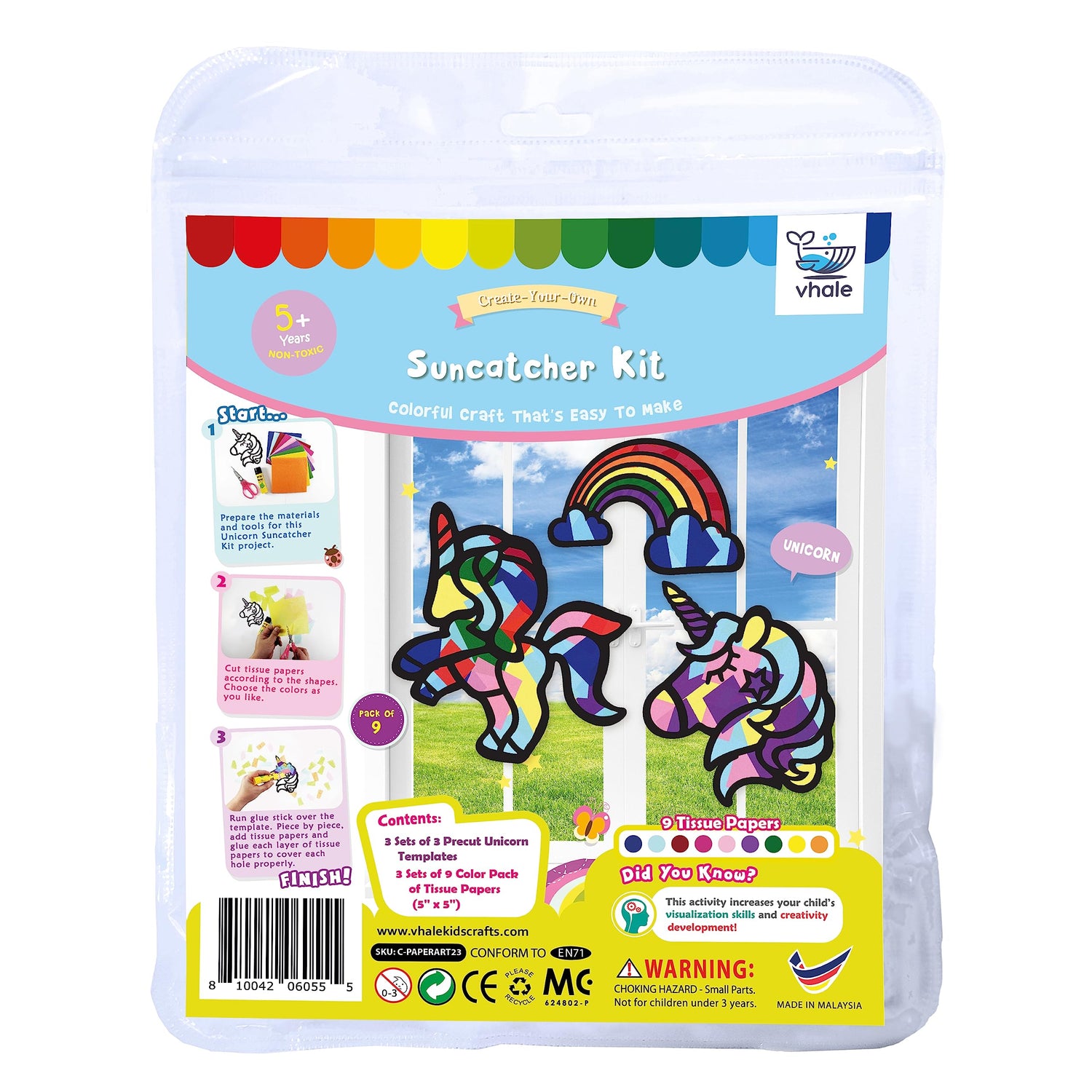 VHALE Suncatchers Craft 3 Sets (9 Cutouts) w Tissue Papers Stained Glass Effect Paper Sun Catcher Kit, Window Art, Classroom Crafts, Creative Art Projects, Kids Party Favors (Unicorn)