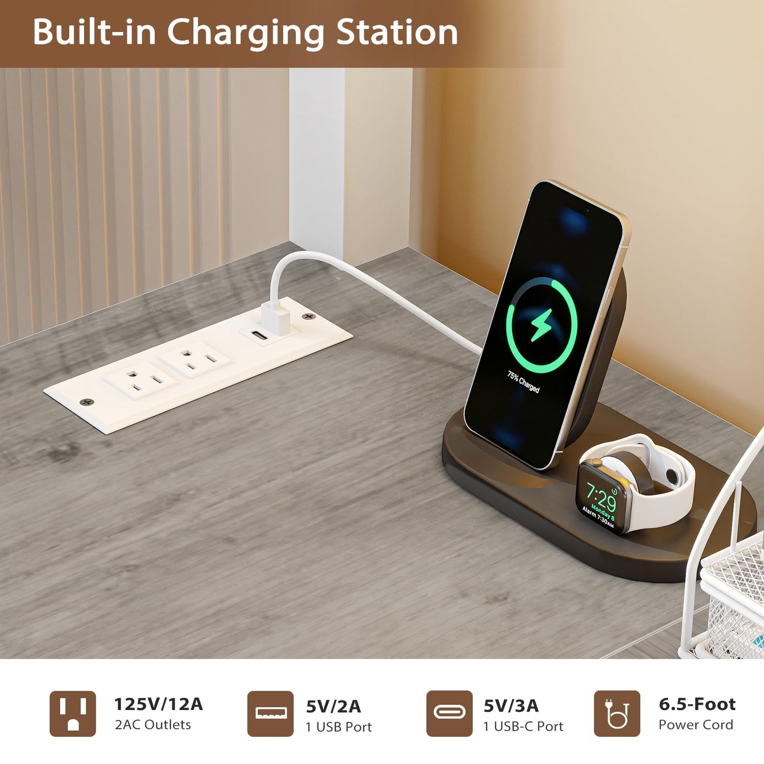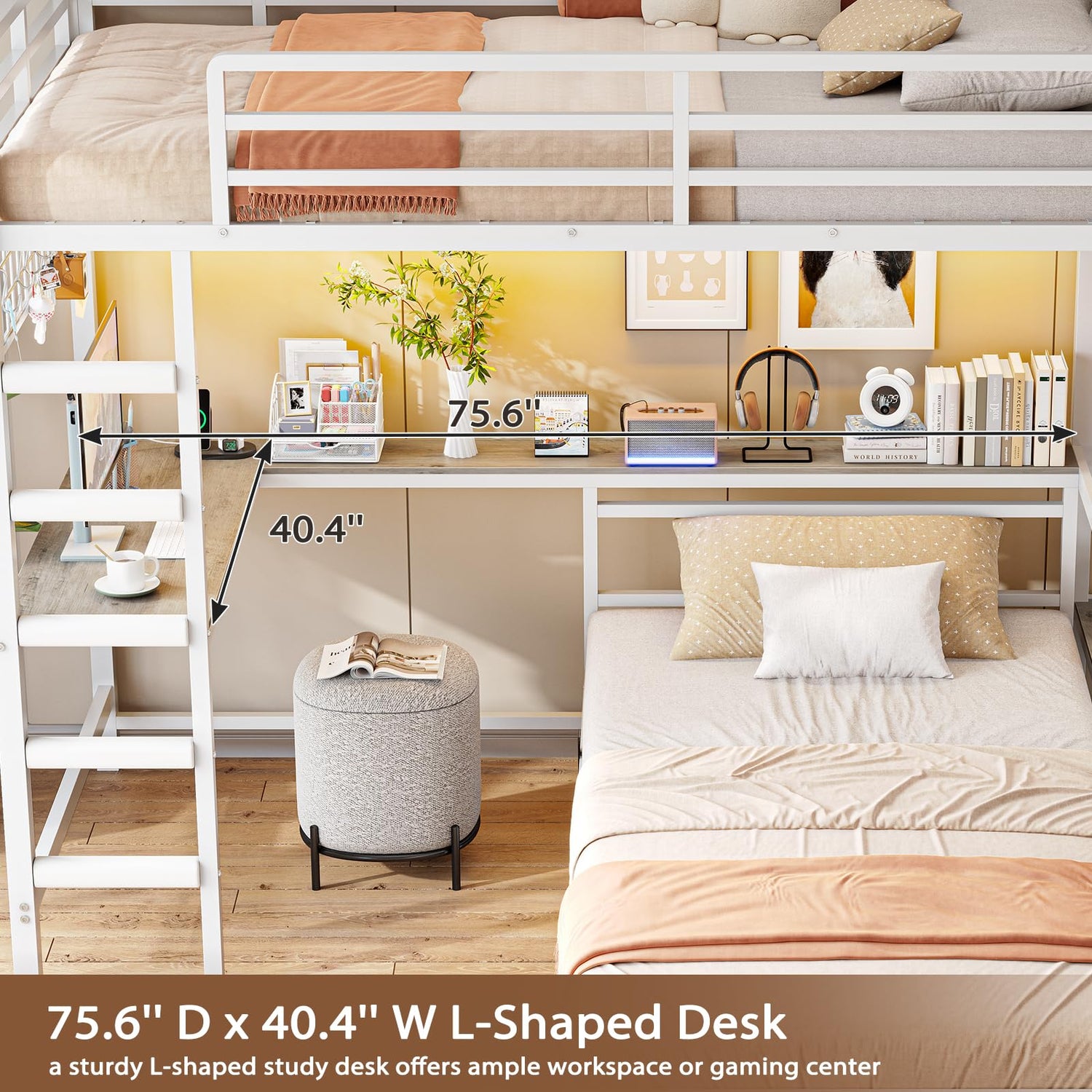 - 【Large Desk with Charging Station】Nestled perfectly beneath the top bunk bed, a sturdy L-shaped study desk offers ample workspace or gaming center. It features a built-in power outlet with 2 AC Outlets, 1 USB Port and 1 fast-charging Type C, keeping your devices charged and cords tidy right where you need them.